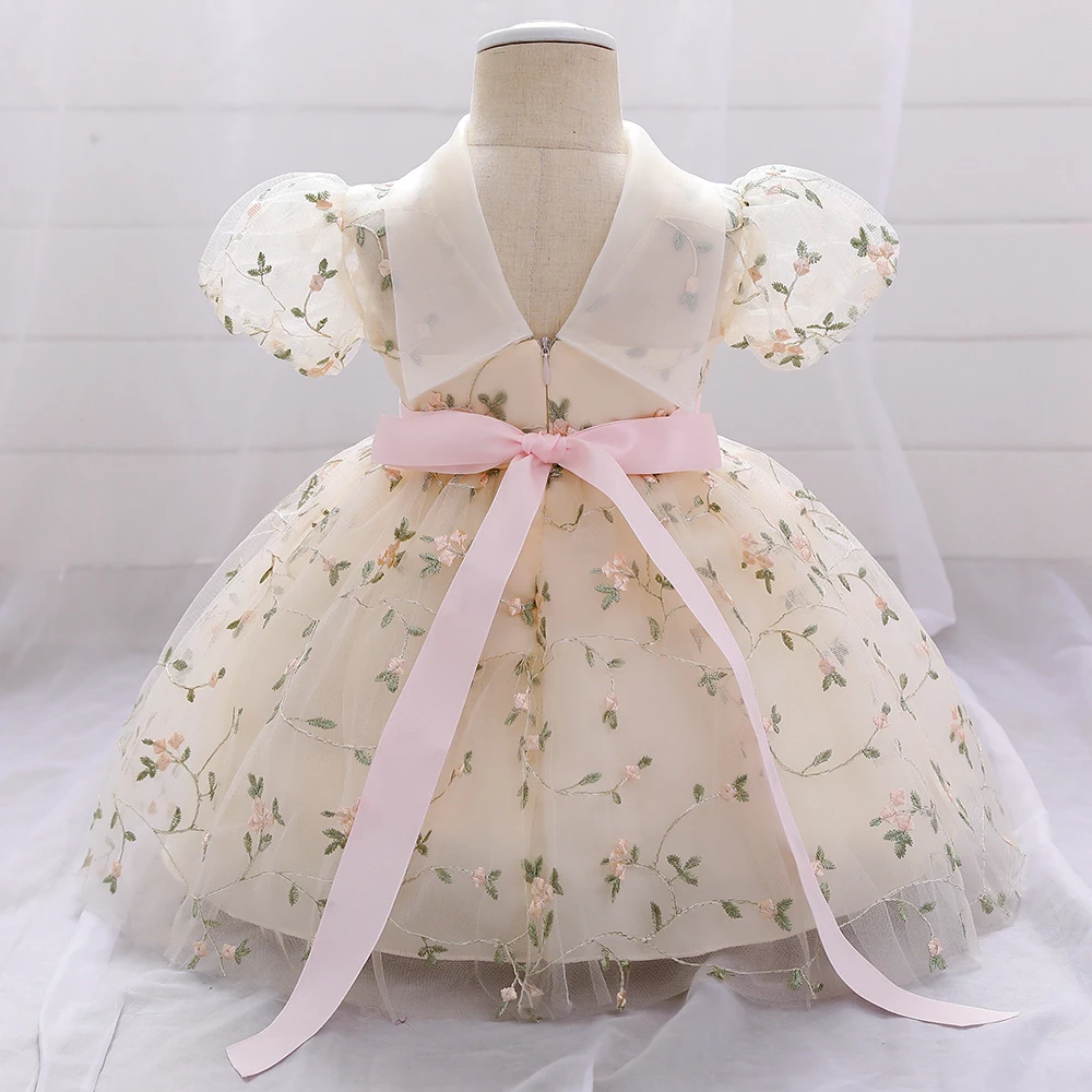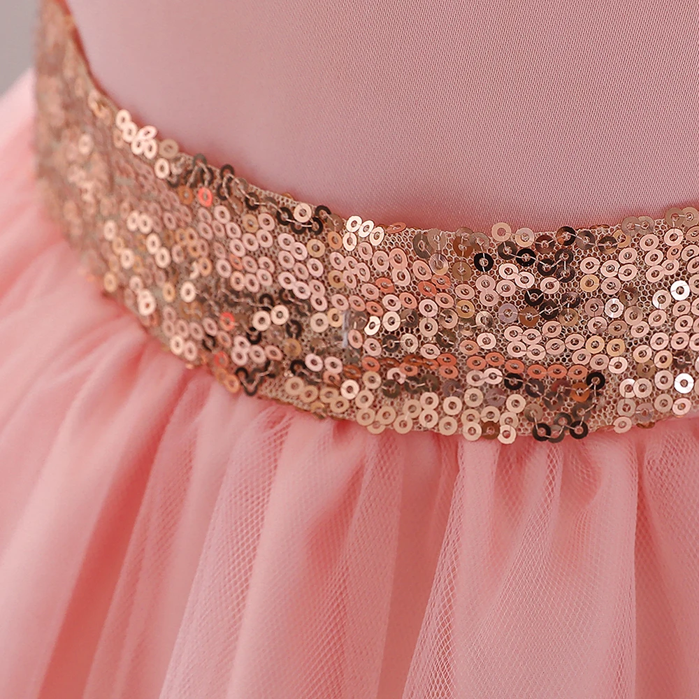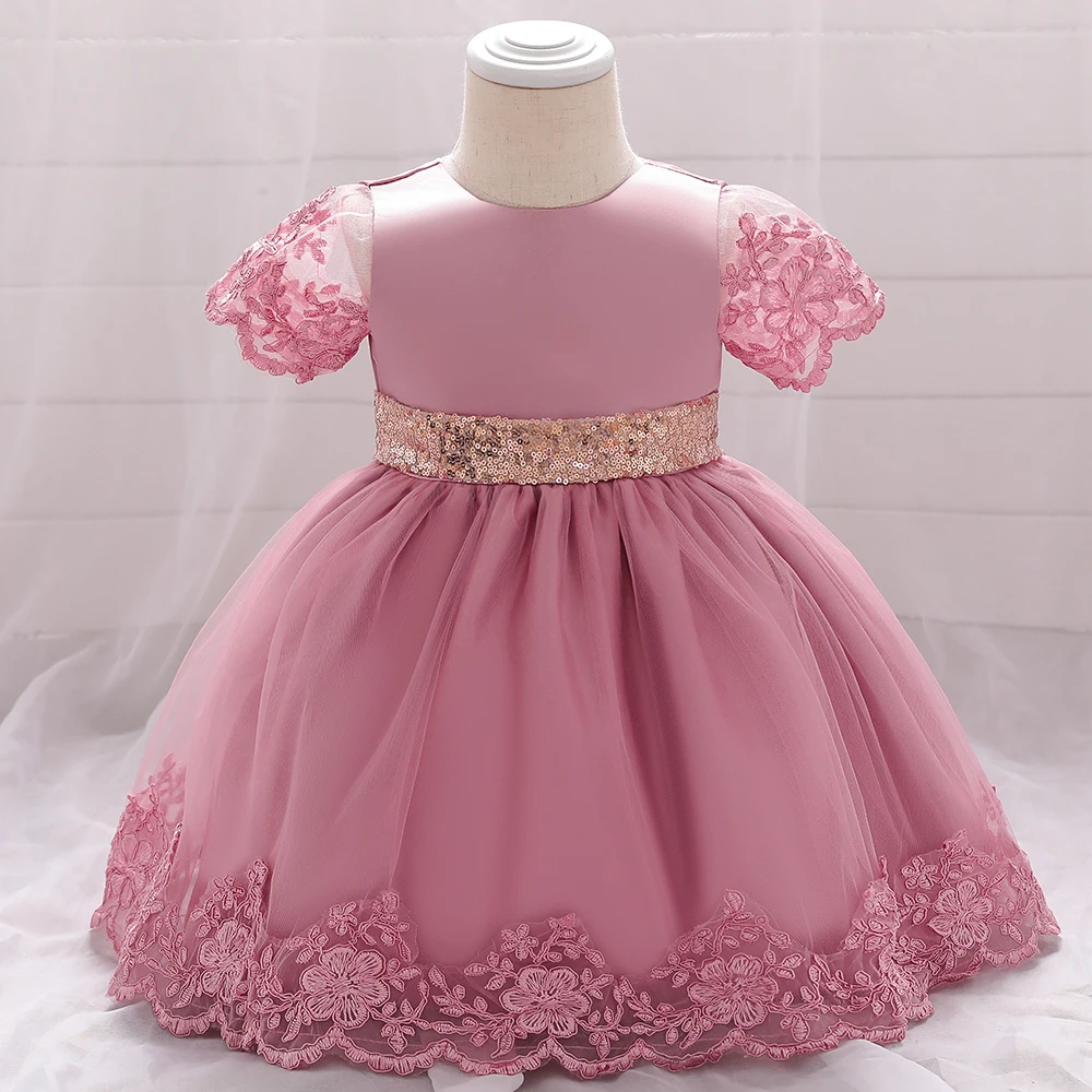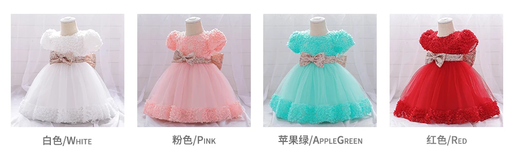 Платье с бантом и блестками для девочек, белое платье для крестин на первый день рождения