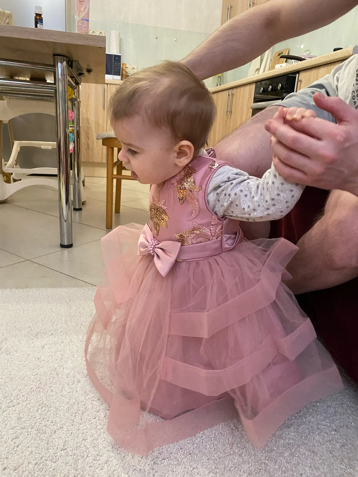 Доставка пешком из Китая, больше 75 дней! Платье ещё имеет запас для нашей дочки ей почти годик