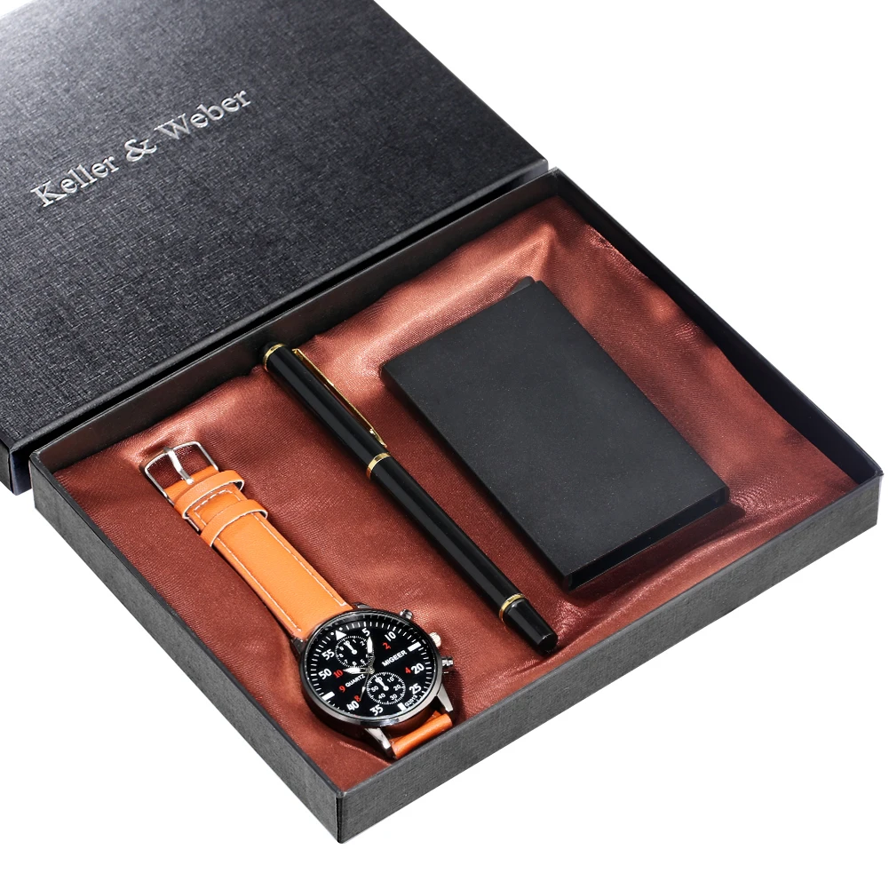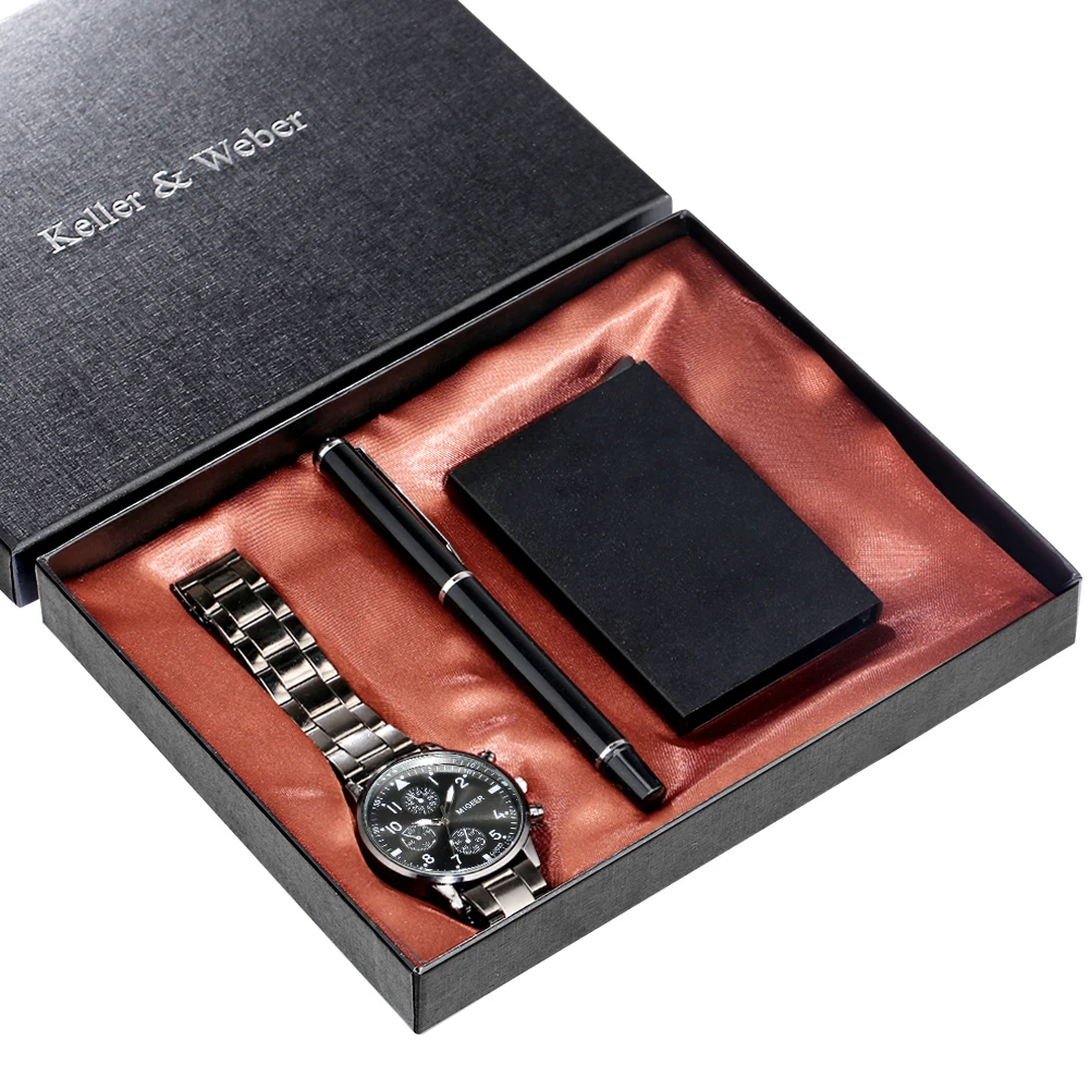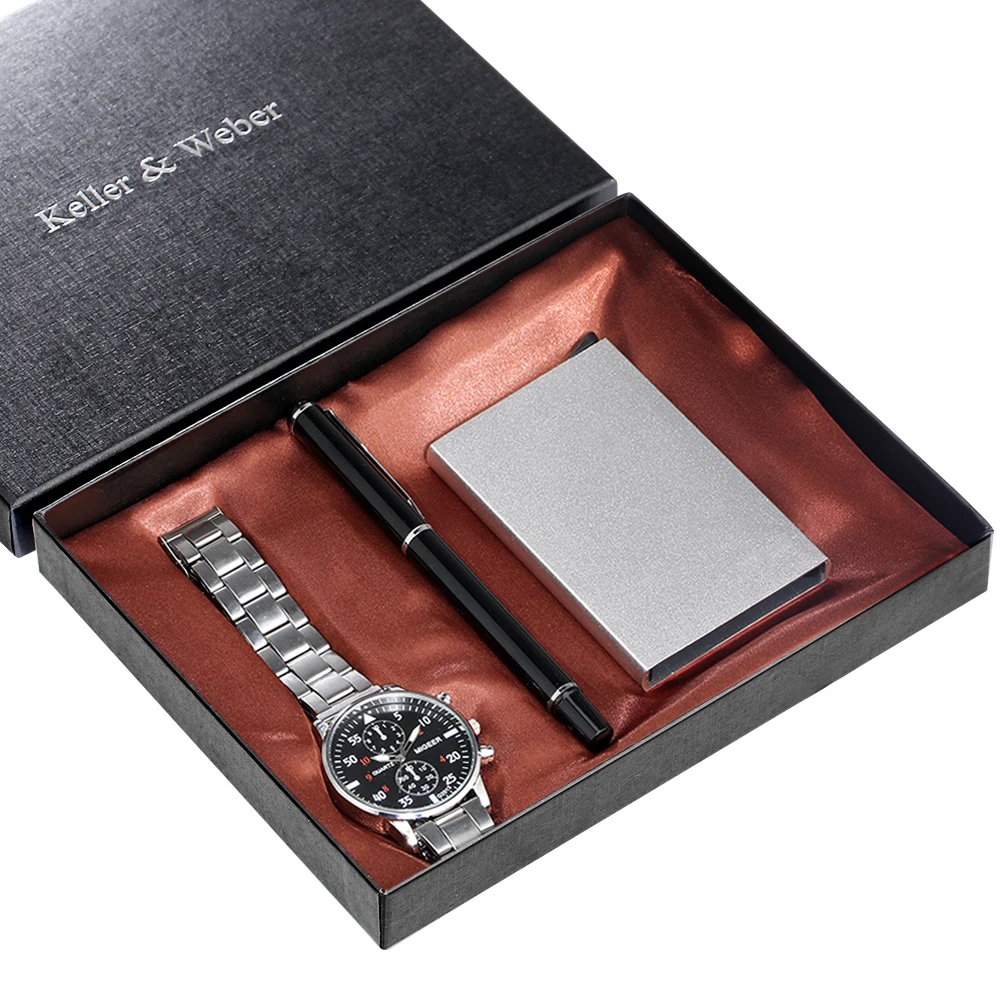 Мужские подарочные наборы, Роскошные Кварцевые часы высокого качества, стильная ручка для подписи, мужской чехол для карт, подарки для мужа, папы, парня, 2021