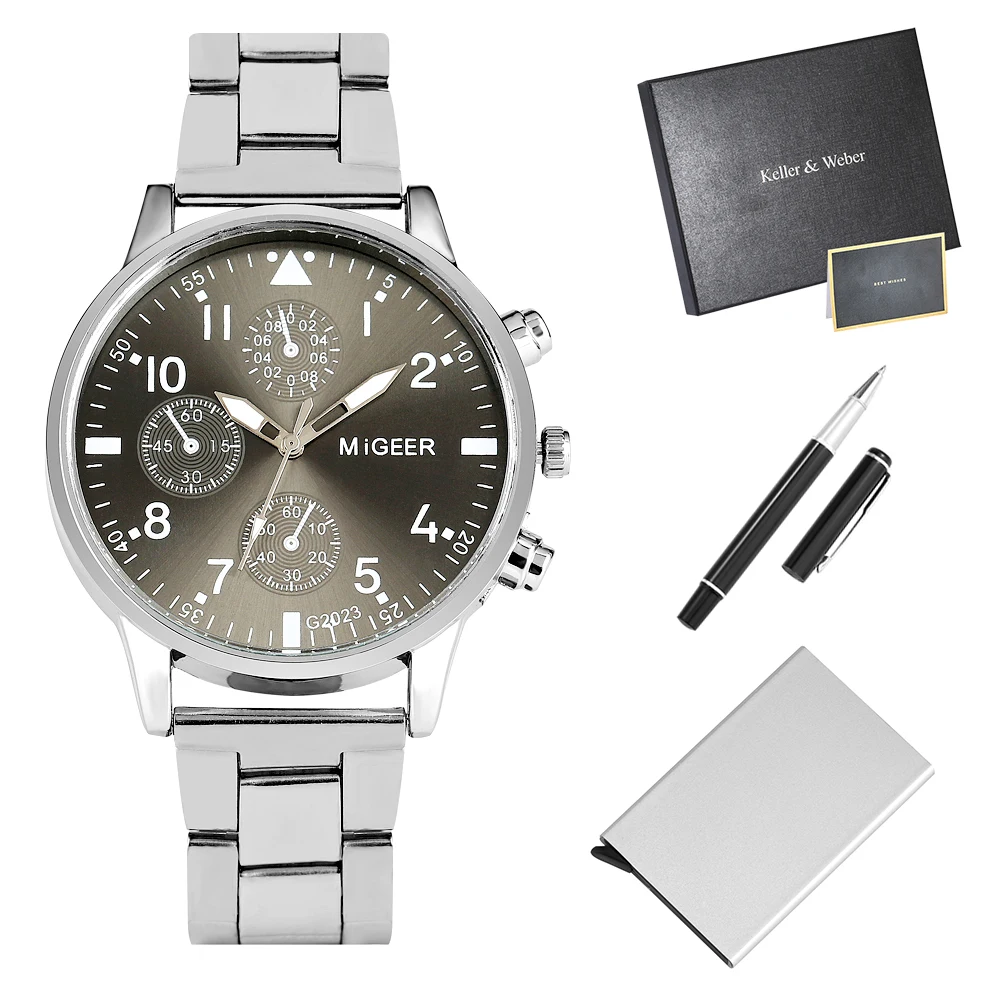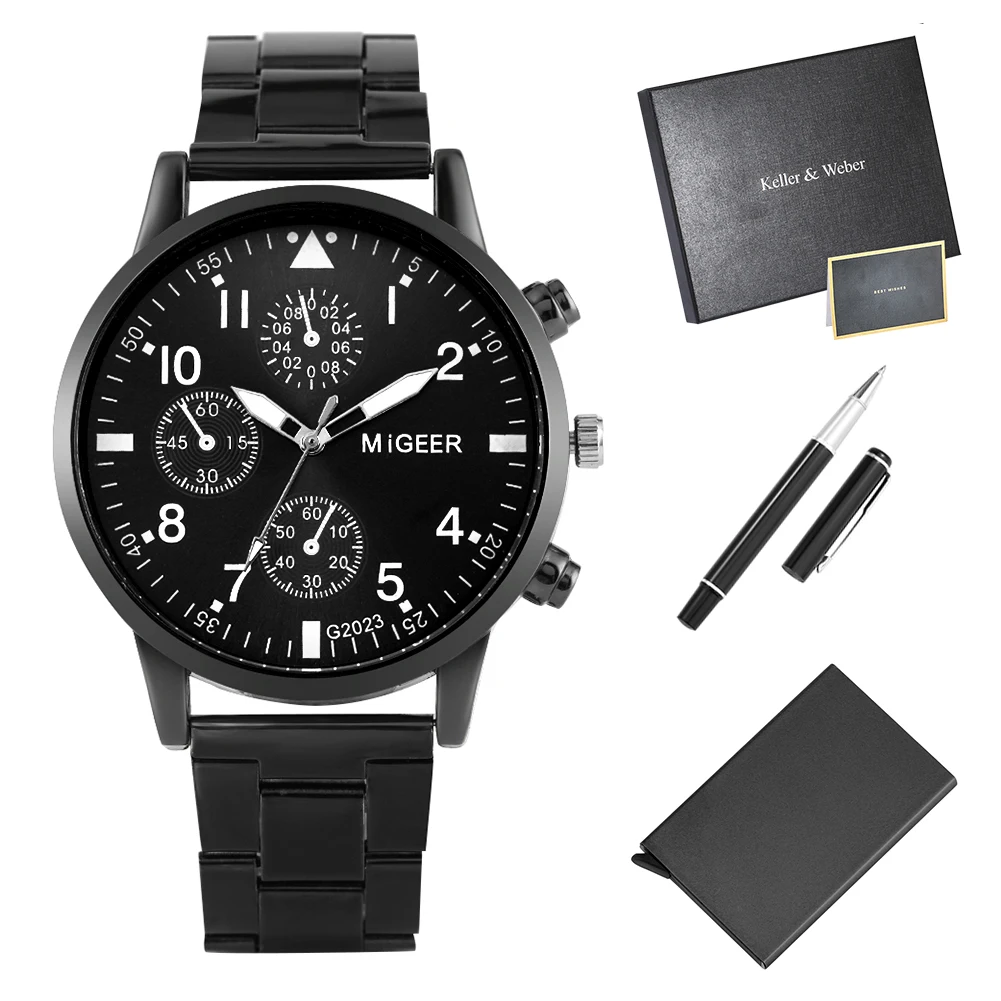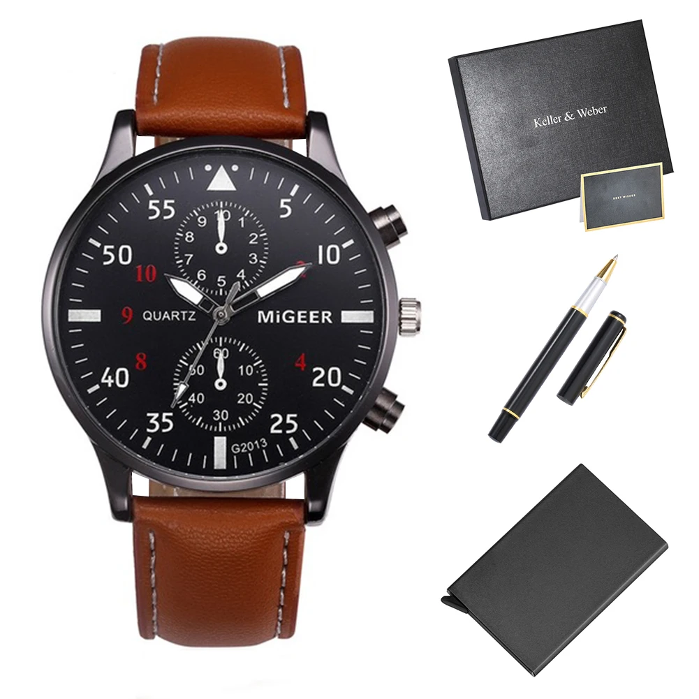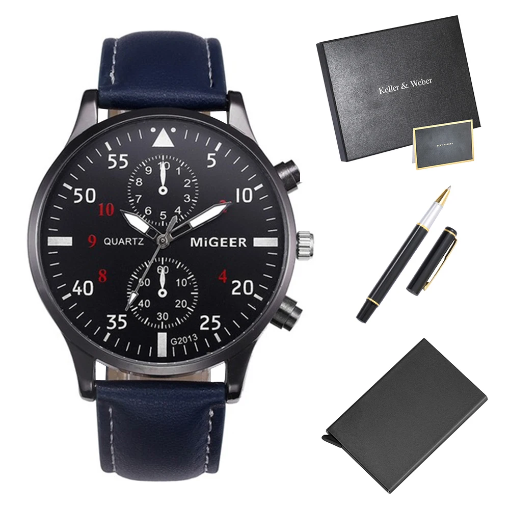 Мужские подарочные наборы, Роскошные Кварцевые часы высокого качества, стильная ручка для подписи, мужской чехол для карт, подарки для мужа, папы, парня, 2021
