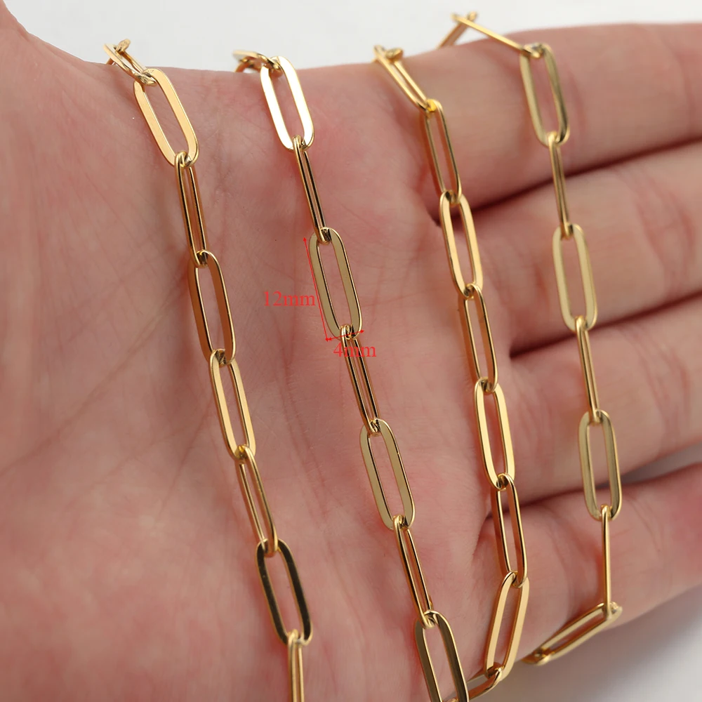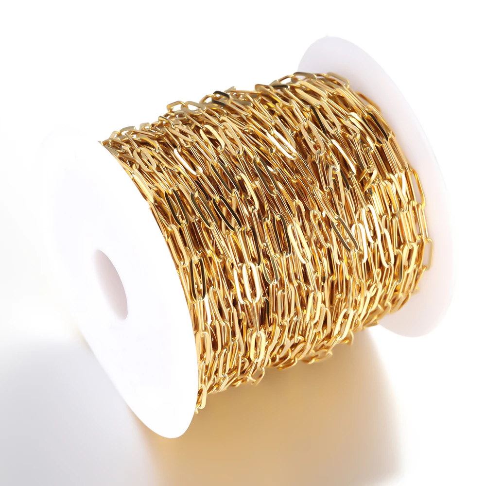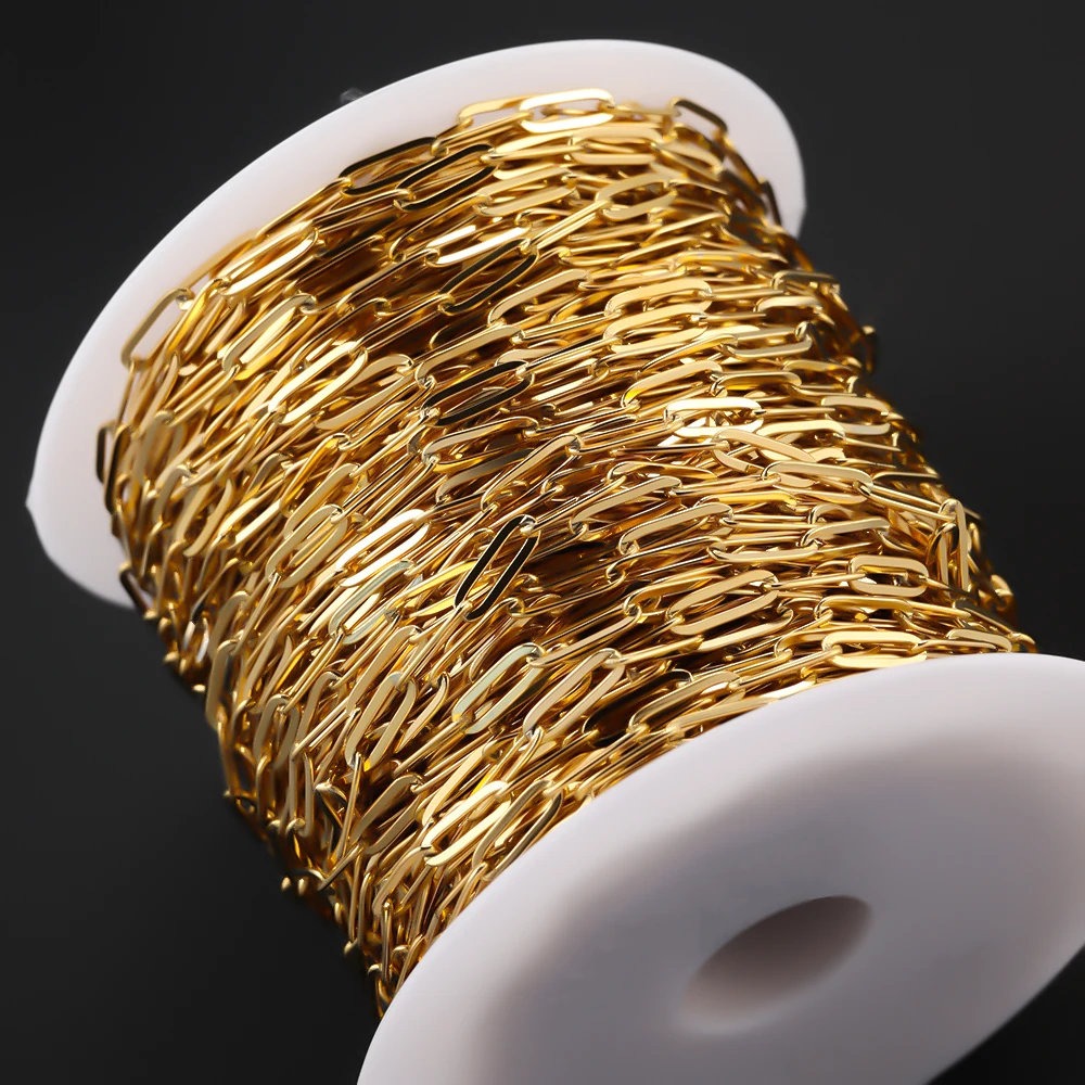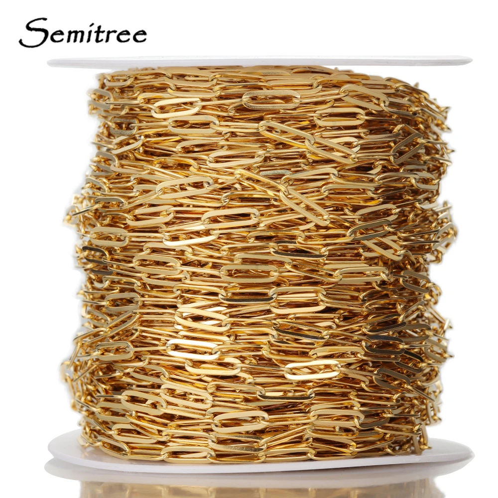 Цепочка Semitree из нержавеющей стали для украшений сделай сам, плоская цепь золотистого цвета с овальным звеньем, цепочка для кошелька, припасы для ремесла, 1 метр