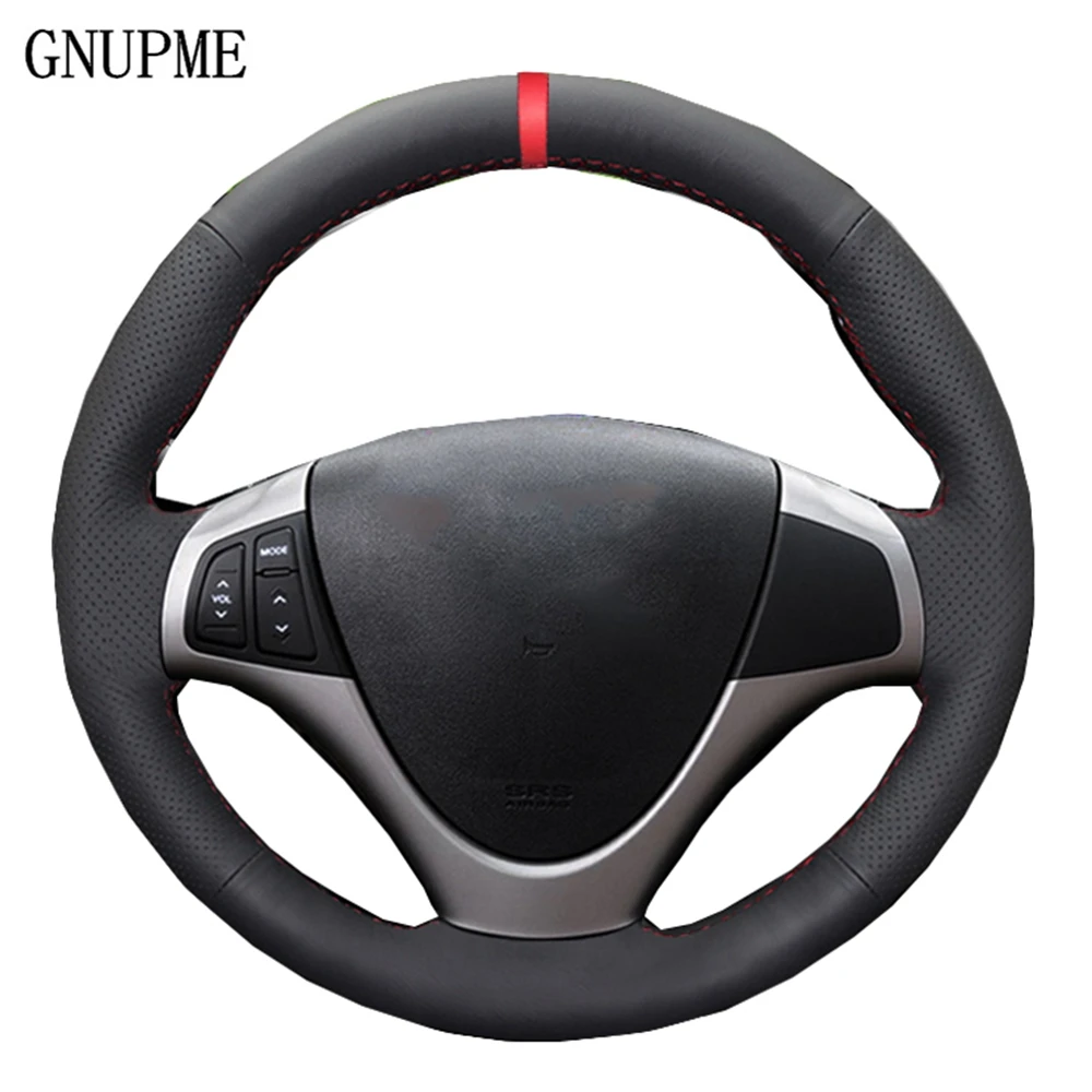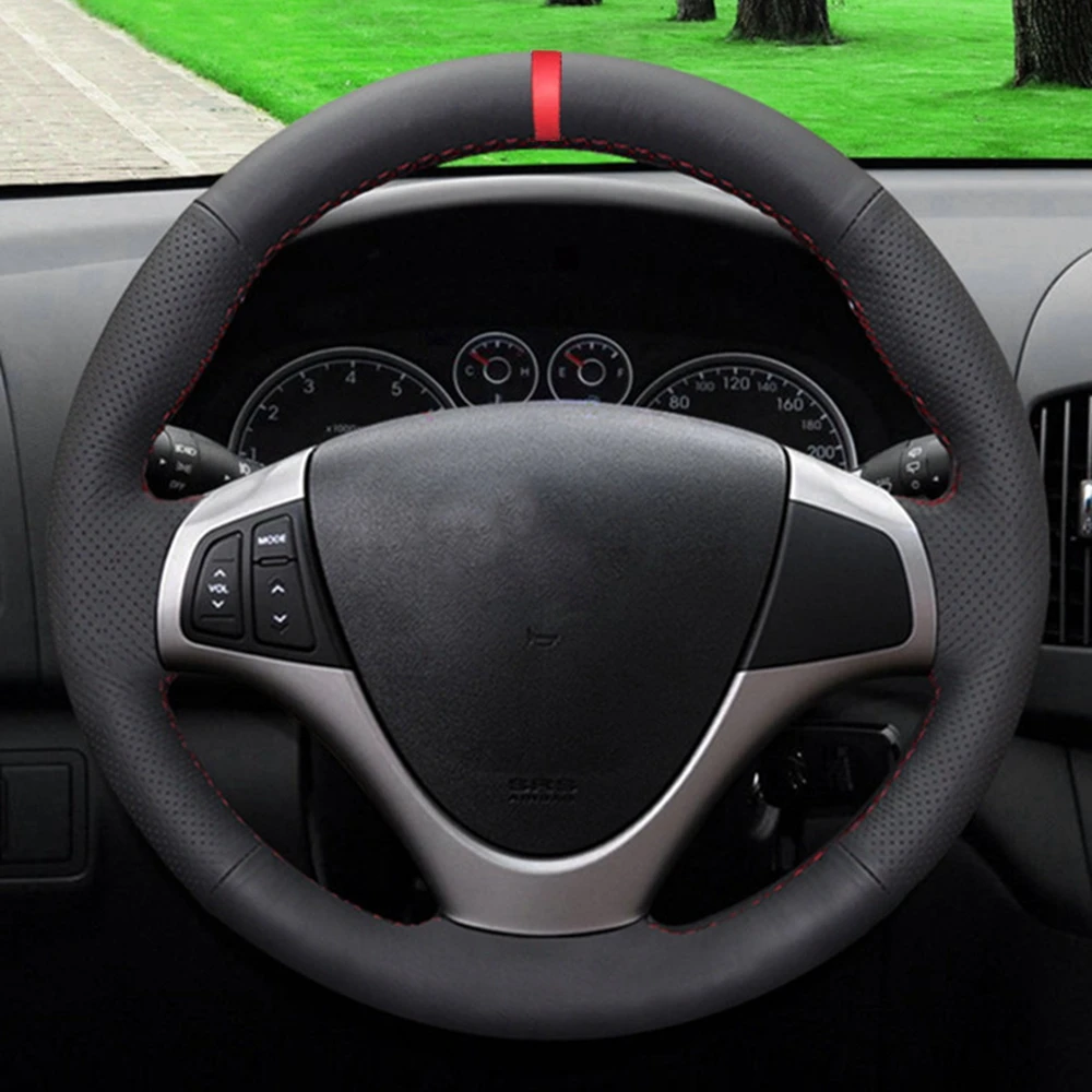 Черный чехол рулевого колеса автомобиля Красный Маркер искусственная кожа; Удобная нескользящая обувь; Размеры для Hyundai i30 2009 2010 2011