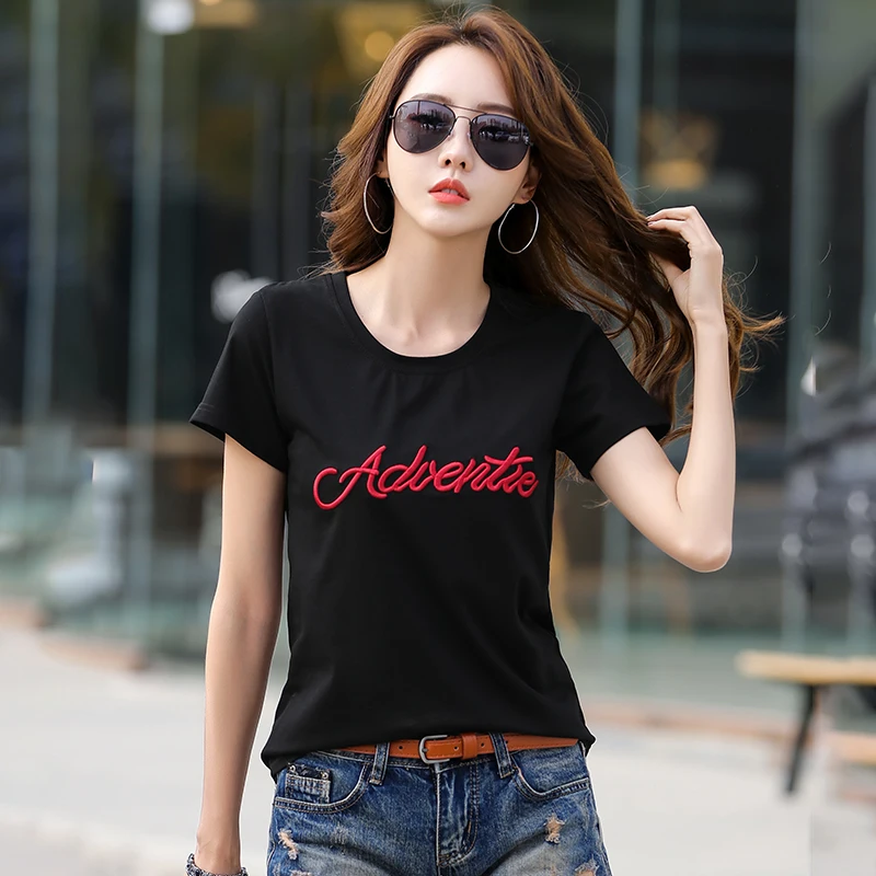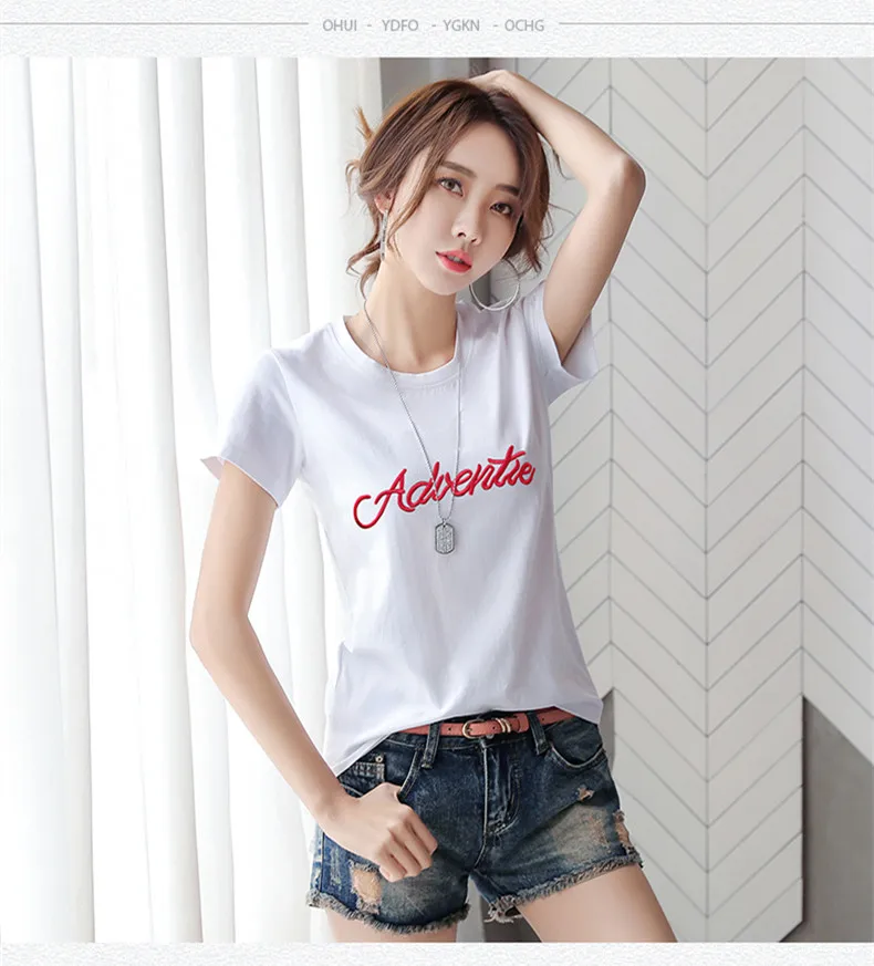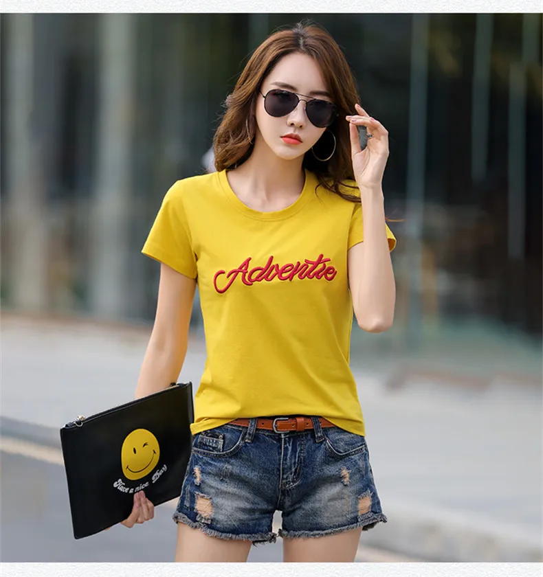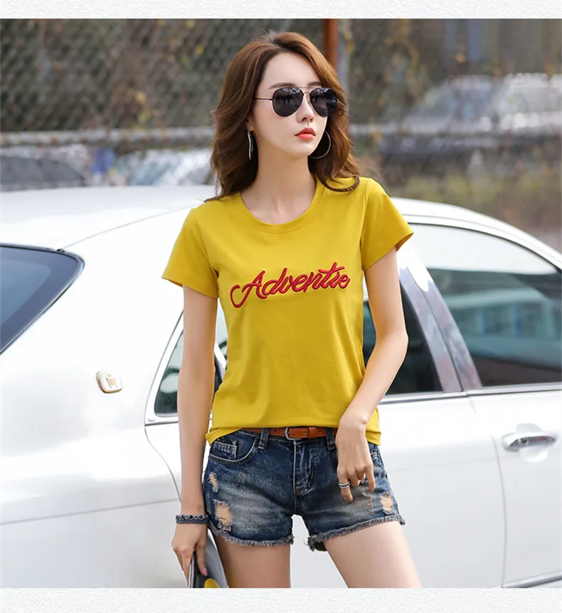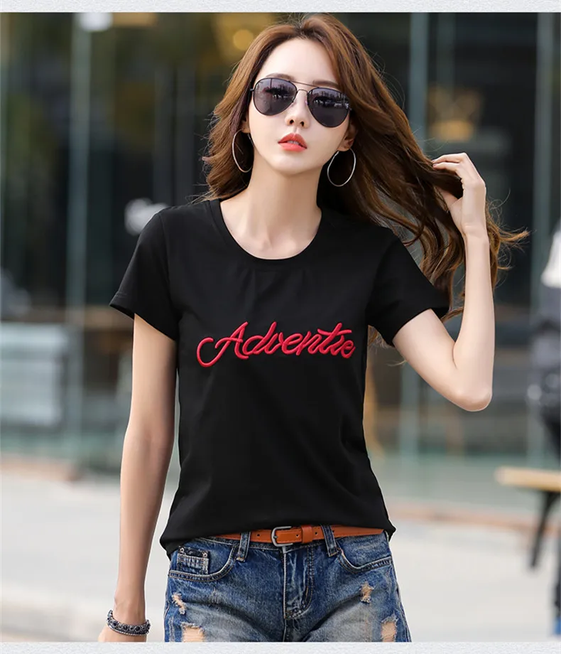 Женская хлопковая футболка Новинка лета 2021 Модные свободные топы с коротким рукавом и вышивкой букв женские свитера