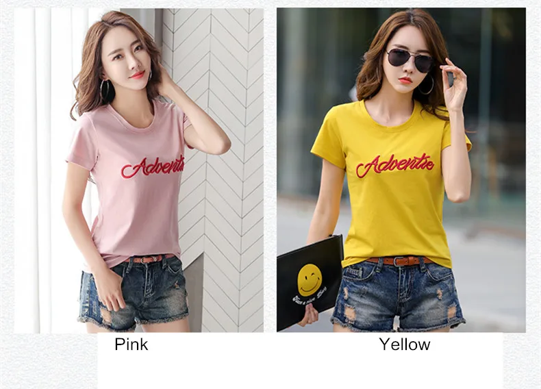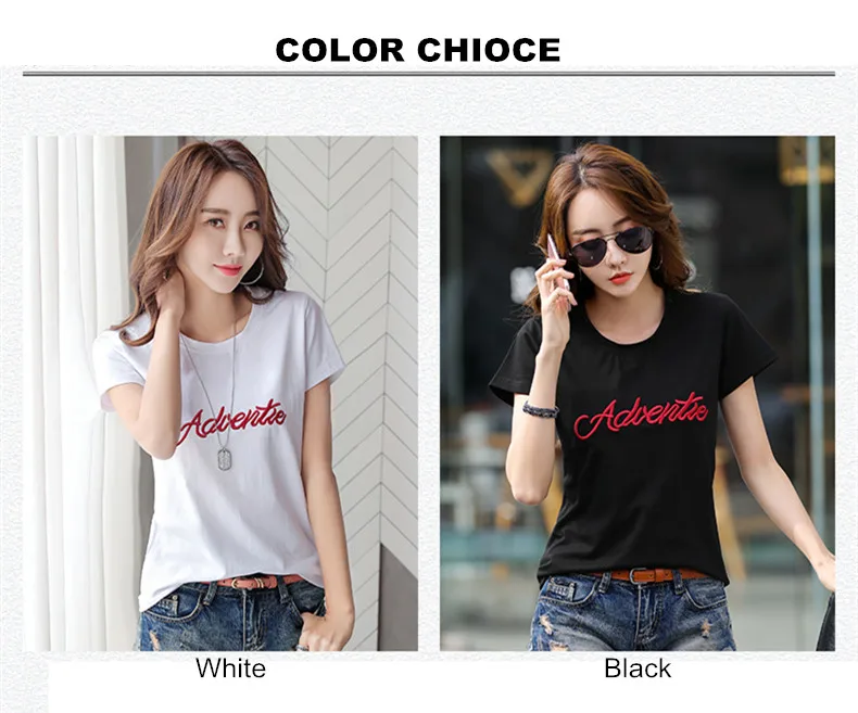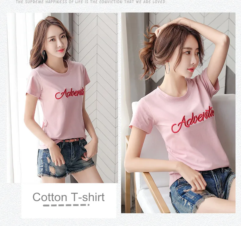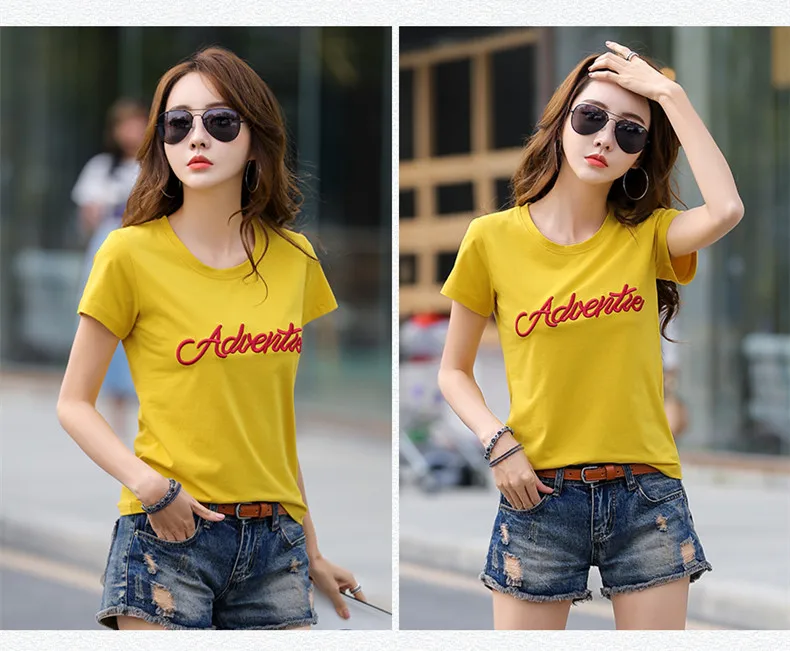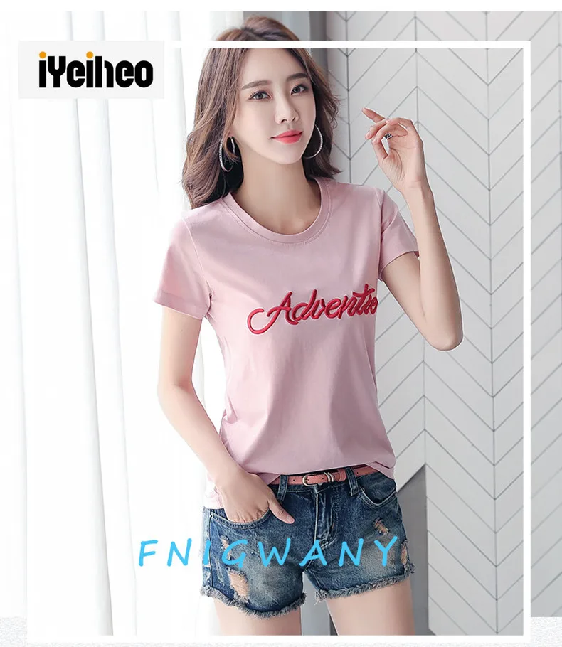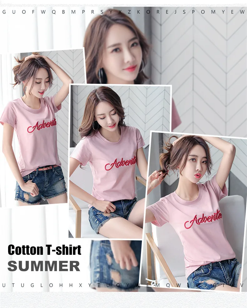 Женская хлопковая футболка Новинка лета 2021 Модные свободные топы с коротким рукавом и вышивкой букв женские свитера