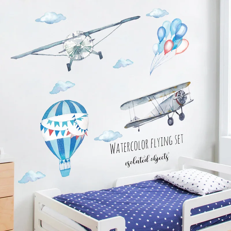 Мультфильм ручная роспись самолета детская комната спальня стикер стены воздушный шар стены переводная наклейка Съемная виниловая Фреска Искусство стены плакат