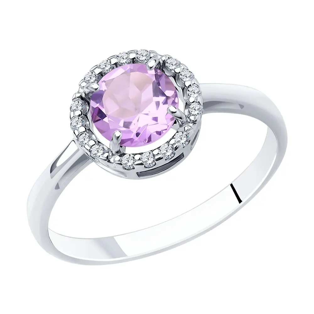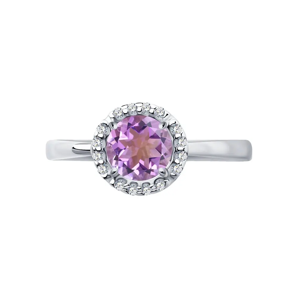 Кольцо SOKOLOV из серебра с аметистом и фианитами, Серебро, 925, Женское, Оригинальная продукция