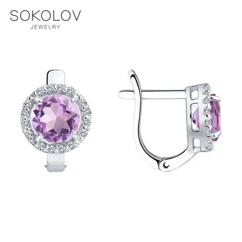 Серьги SOKOLOV из серебра с аметистами и фианитами, Серебро, 925, Женские, Серьги 2022 тренд, Оригинальная продукция