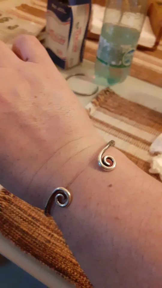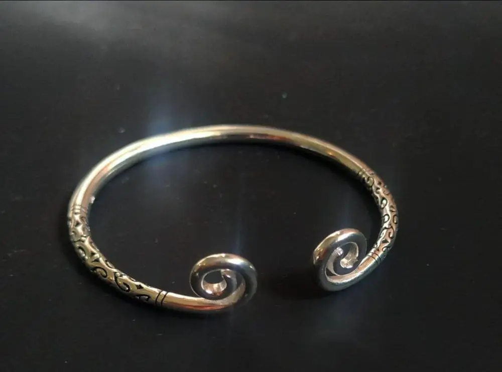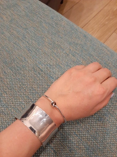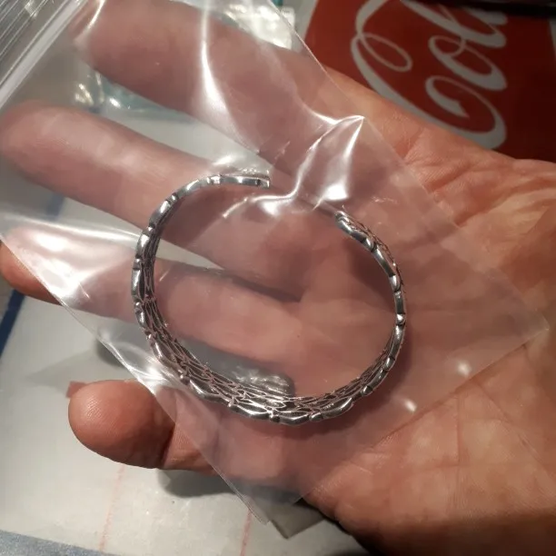 Отличный браслет. Достаточно увесистый. Красивый, без царапин. Быстрая доставка. Чтобы надеть его пришлось разогнуть немного. Браслет выдержал)))) не сломался. На внутренней стороне стоит проба(видимо европейская))) браслет пришёл замотанный в пупырку. Вообщем рекомендую.