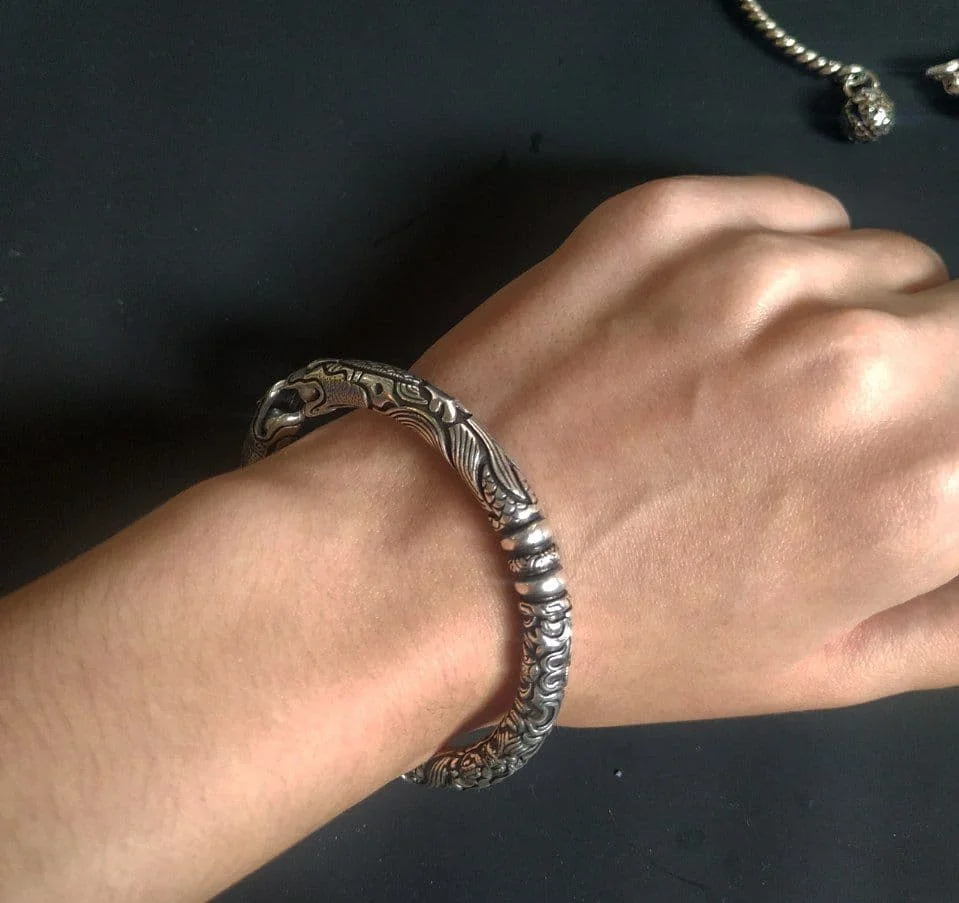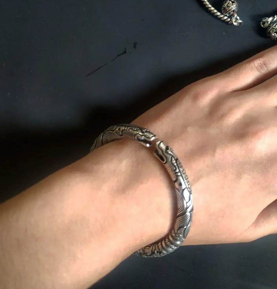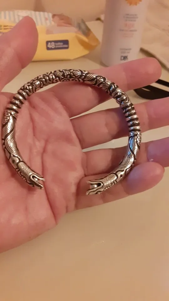 Очень красиво, шарики во ртах подвижны и звенят. Браслет очень тяжелый, вообще не разгибается. На тонкую руку смогла надеть, но снимать будет сложно. Нужно будет большое усилие. Только на тонкую ручку. На внутренней стороне стоит проба S925. Выглядит хорошо, но серебро ли - не уверена.