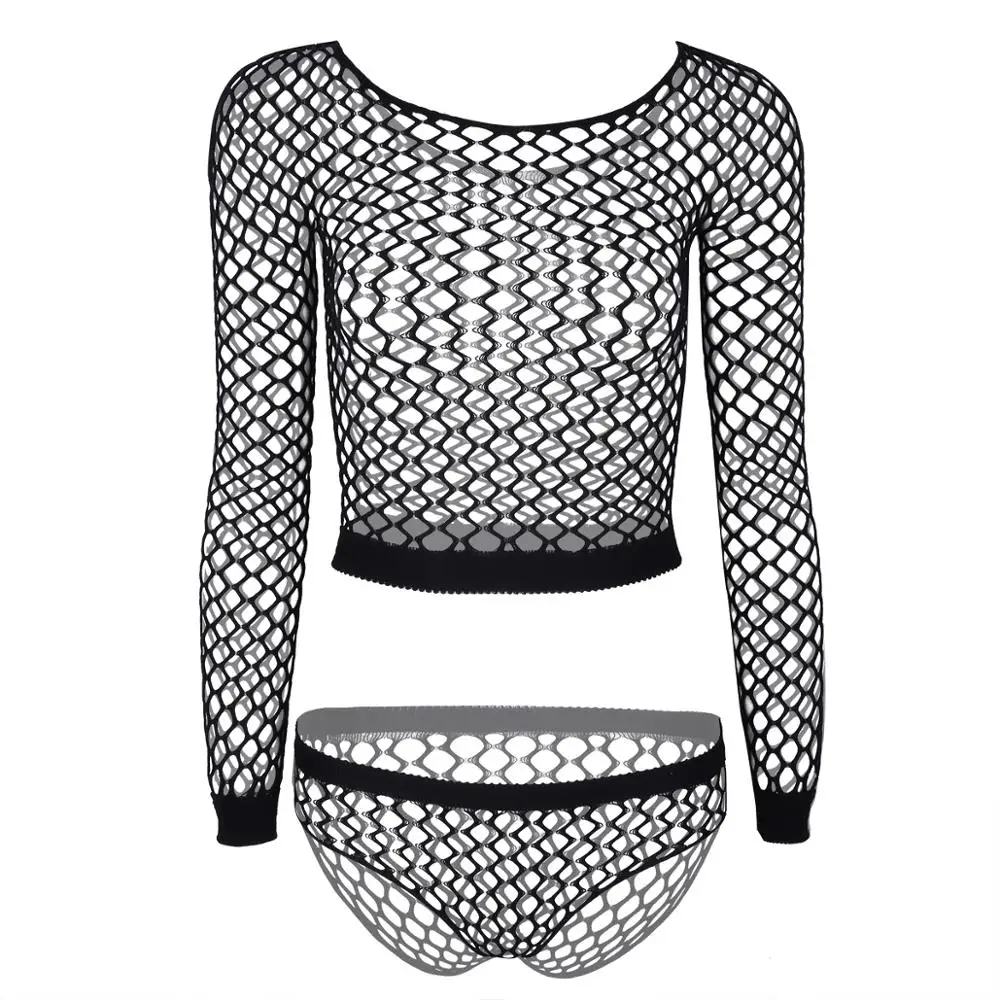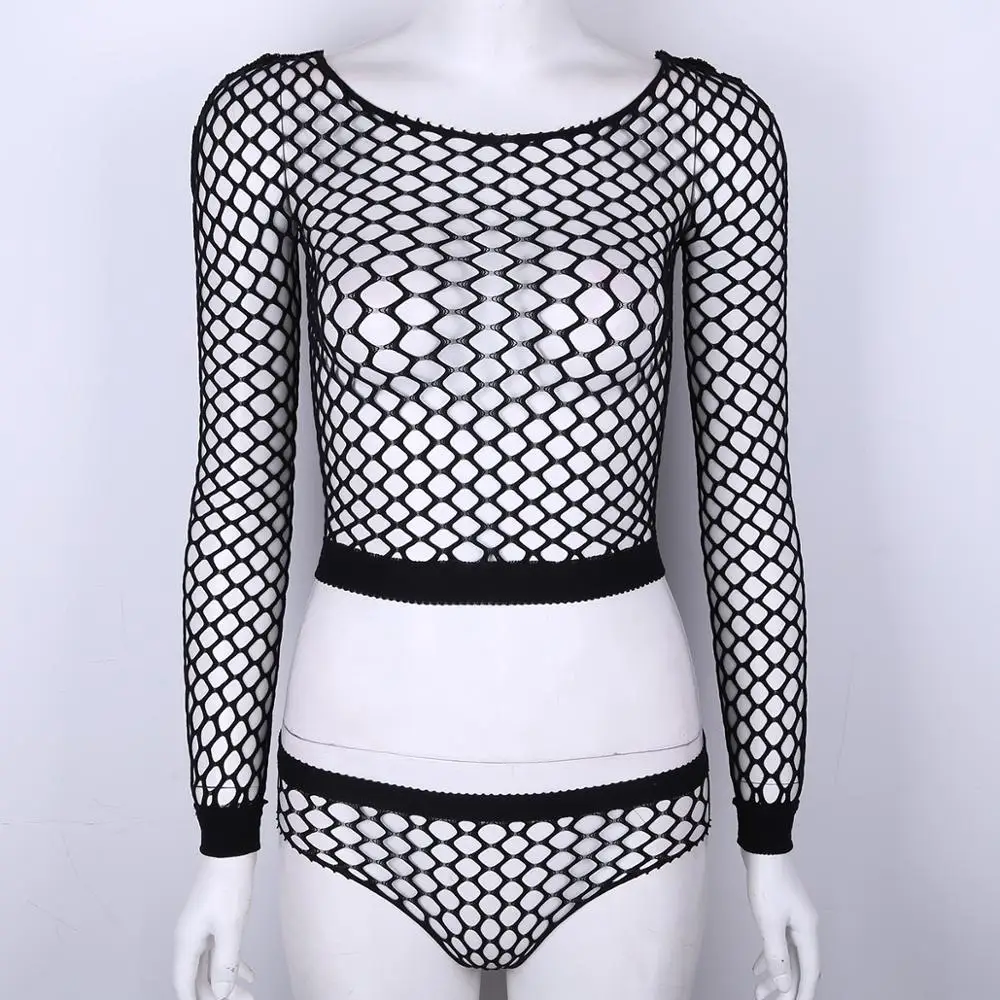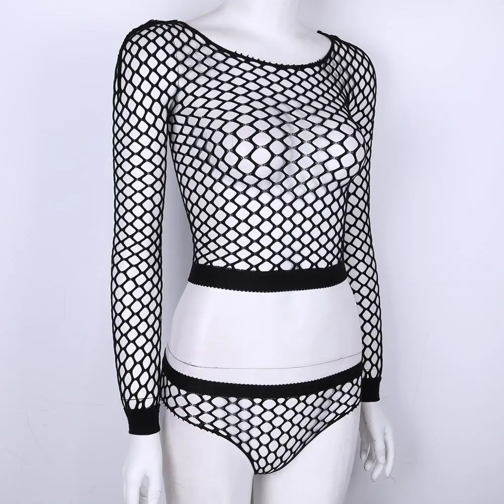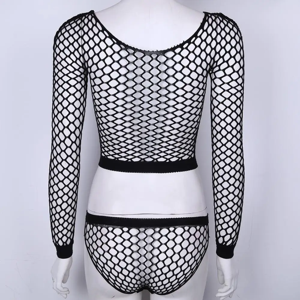 Комплект женского нижнего белья в сеточку, ажурное бикини, сетчатый мягкий эластичный комплект нижнего белья с топом и низом, ночное белье