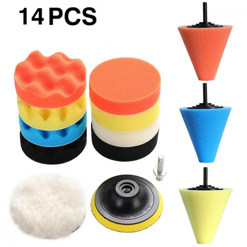 14 шт. для полировки автомобиля Комплект Полировка Pad 13 ''6 мм колеса Полировочный конус инструменты для чистки автомобиля моющая Чистящая машина ступица Губка для полировки