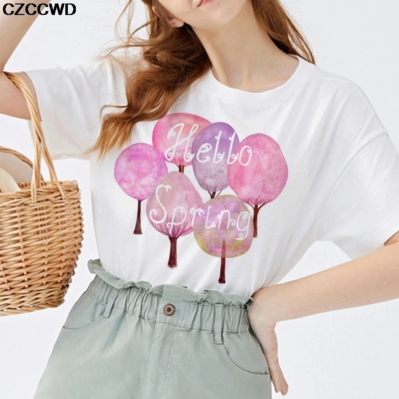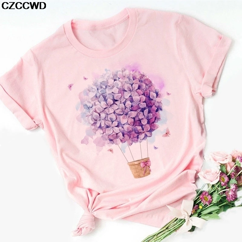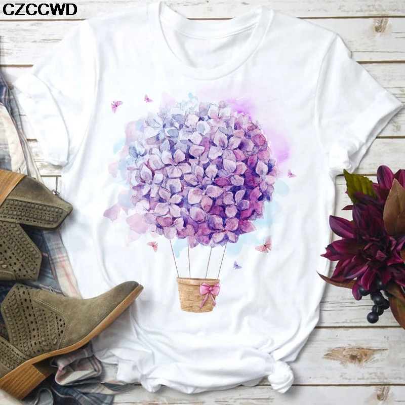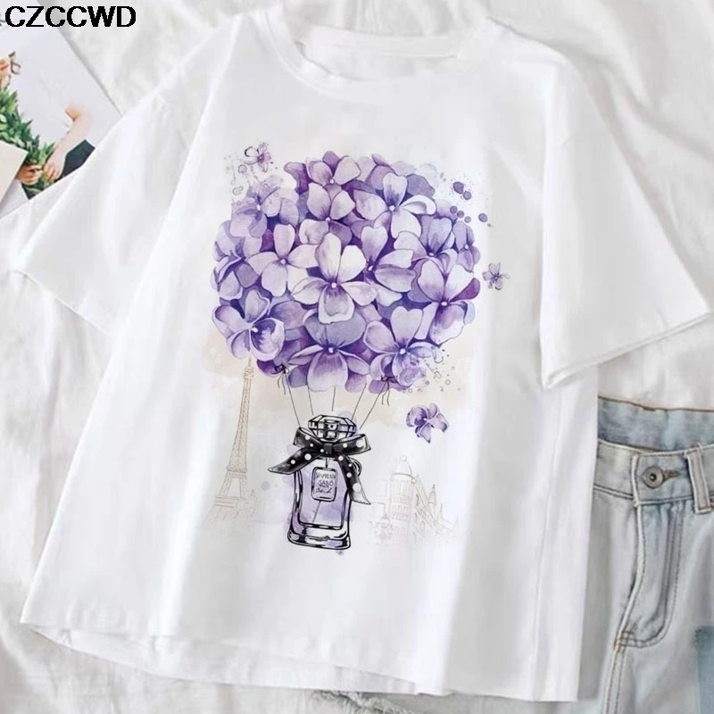 2020 Летняя женская модная футболка с коротким рукавом и красивым цветочным принтом, топ, женская футболка с графическим принтом, женская футболка