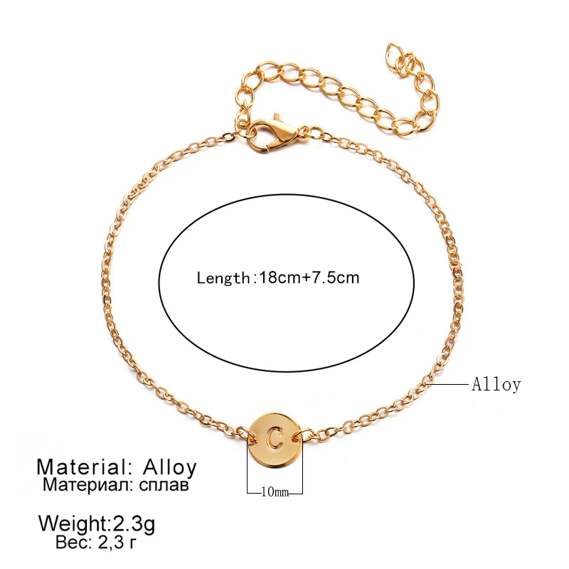 Золотистыйстальной цвет, 26 алфавитов, оригинальные светлые браслет...