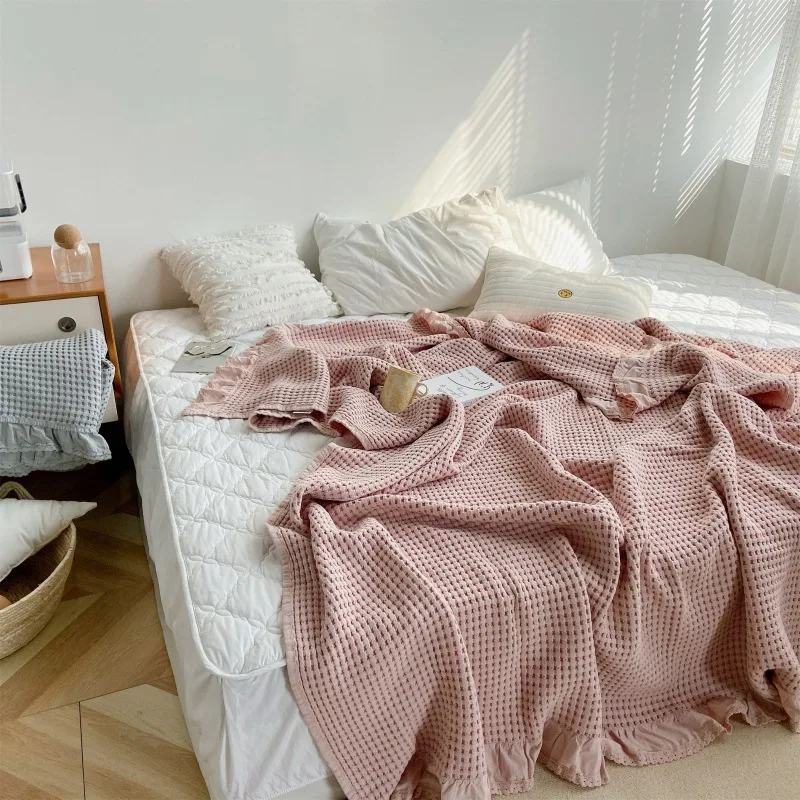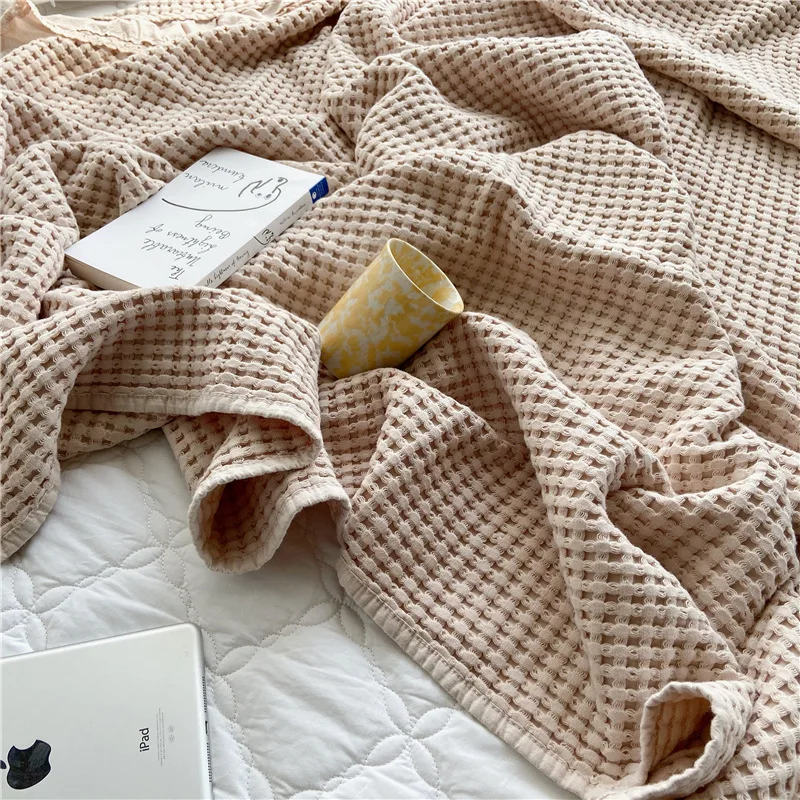 Хлопковое вафельное летнее одеяло, одноцветное покрывало, покрывало для кровати, простое покрывало для дивана, покрывало для дивана