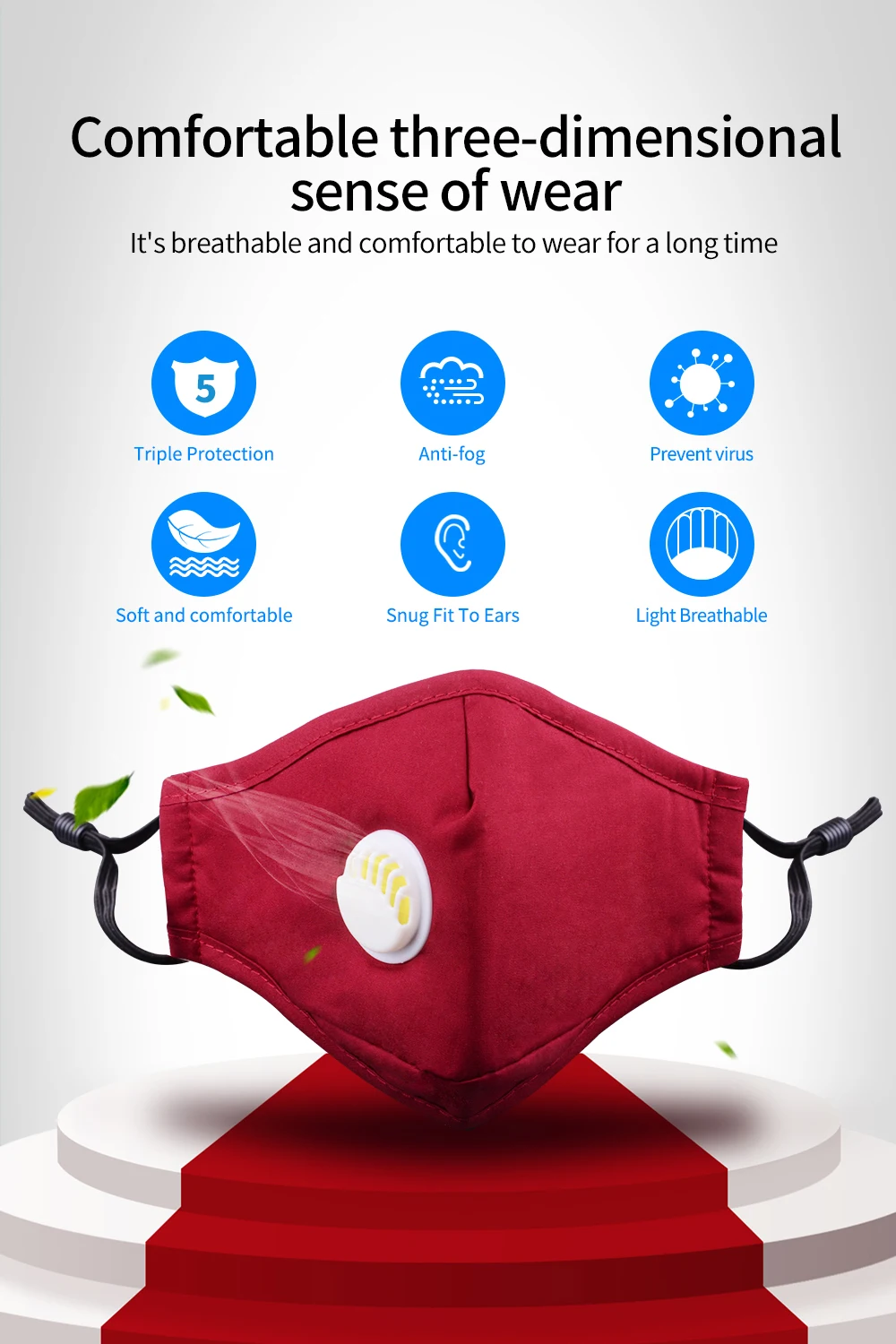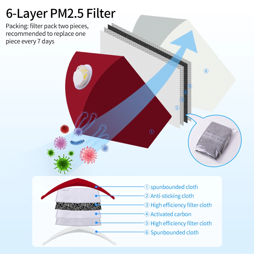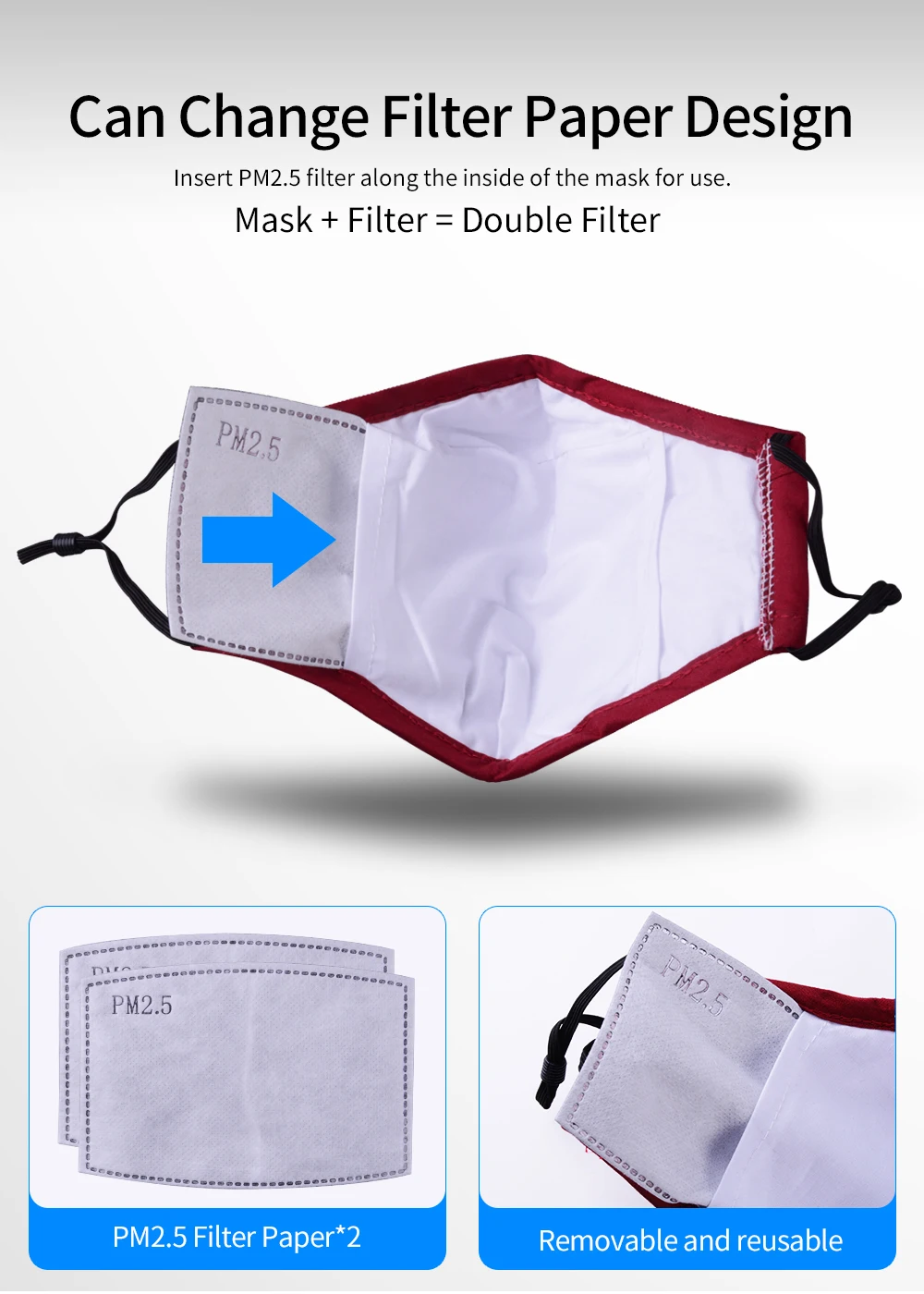 Модная маска для рта PM2.5, респиратор, моющиеся многоразовые хлопковые маски для лица, маска для рта с 2 фильтрами для мужчин и женщин, фильтр PM25
