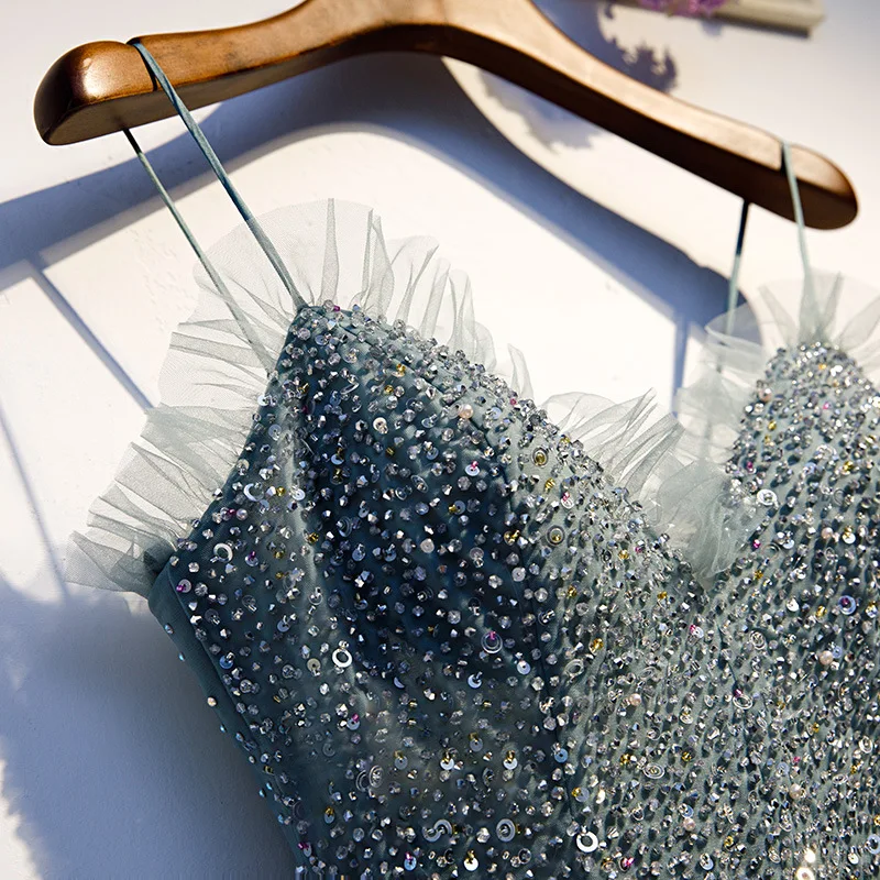 Женское длинное платье с V-образным вырезом, блестками и бусинами