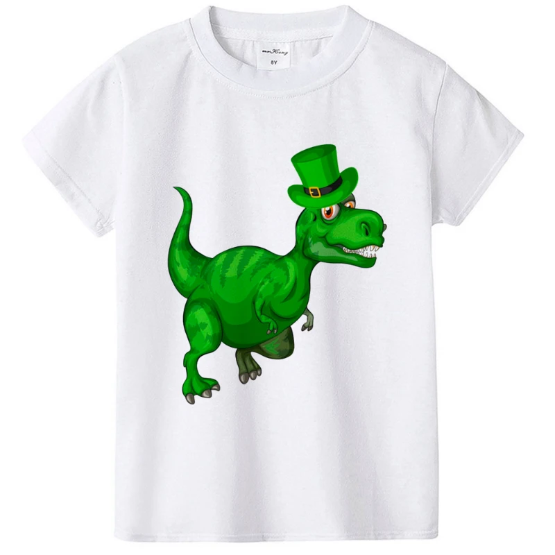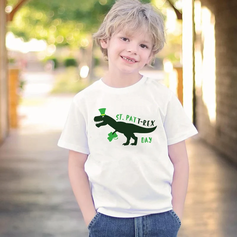 Зеленая футболка счастливого динозавра на день Патрика, лучшие белые футболки для мальчиков и девочек, одежда для первого Дня Святого Патрика, модные топы, футболка