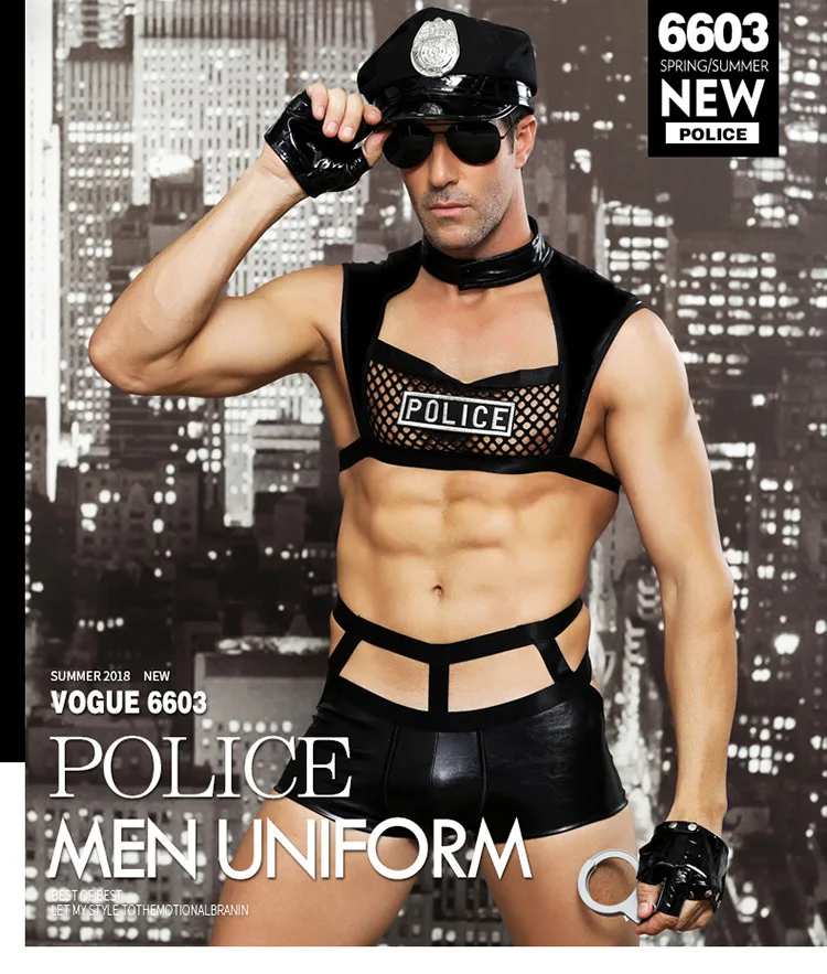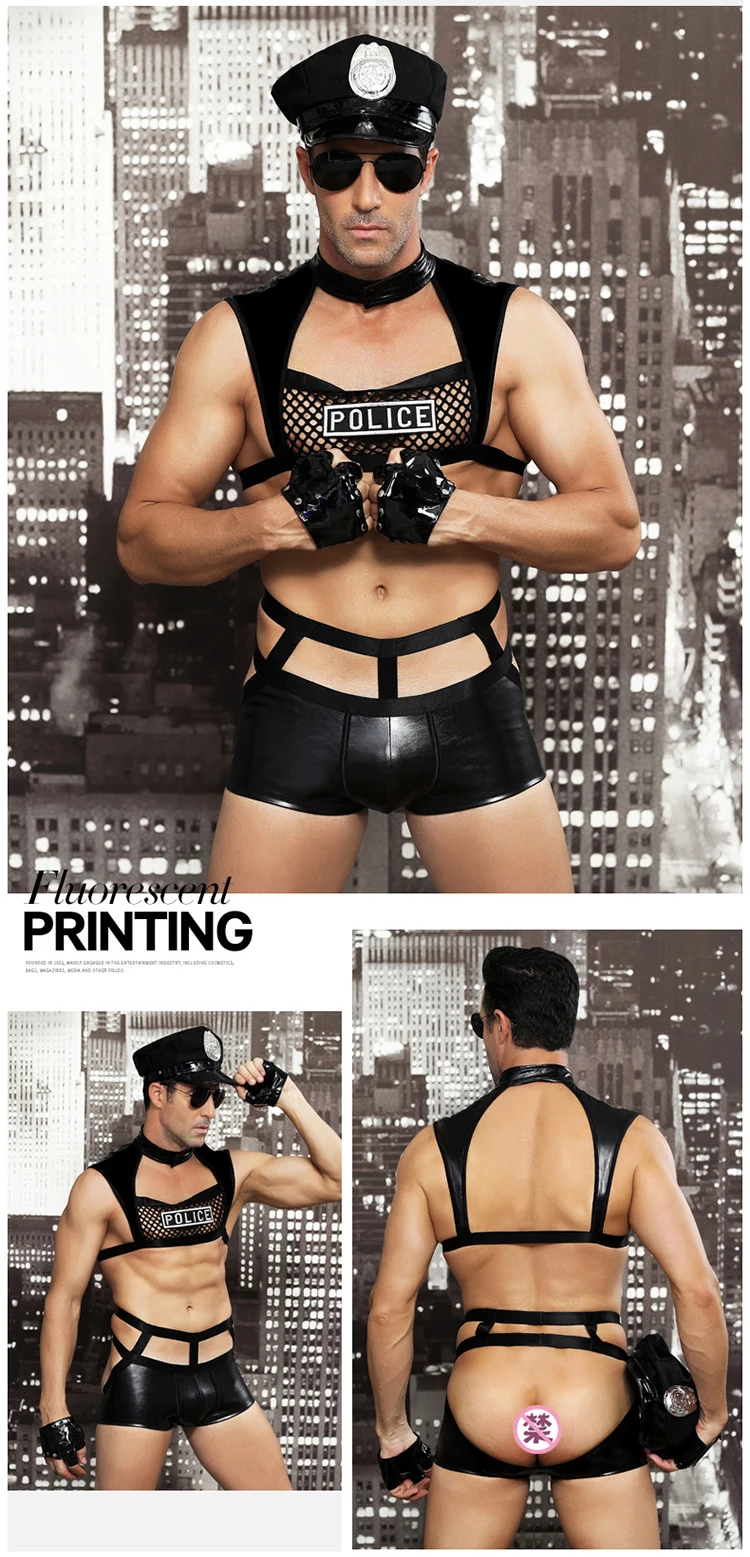 Сексуальная полицейская форма, черное латексное Сетчатое сексуальное нижнее белье, сексуальная полицейская одежда для ролевых игр, сексуальный костюм для взрослых мужчин