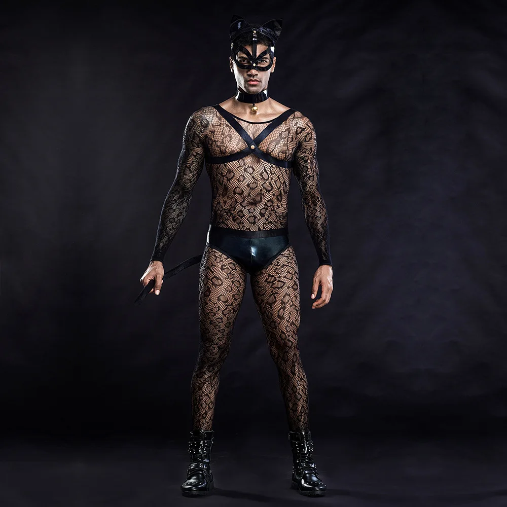 Мужской Прозрачный сетчатый костюм, костюм для косплея кошки, Экзот...