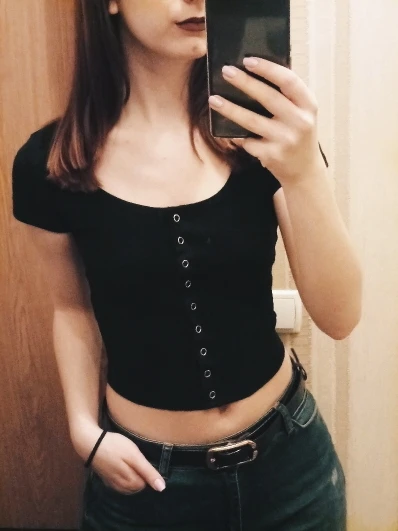 Эта рубашка такая красивая, и она мне очень подходит (я около 5 дюймов 3, обычно ношу XS в магазинах) вещь немного более укороченная, чем на фото (мне очень нравится), и она поставляется с небольшим запахом уксуса, но кроме того, это действительно идеальная черная приталенная рубашка!
