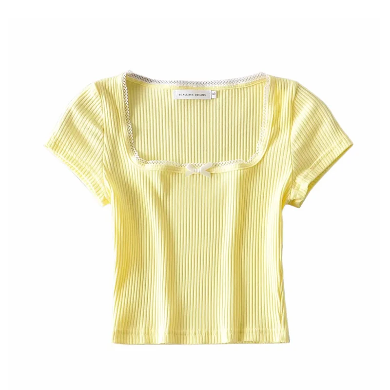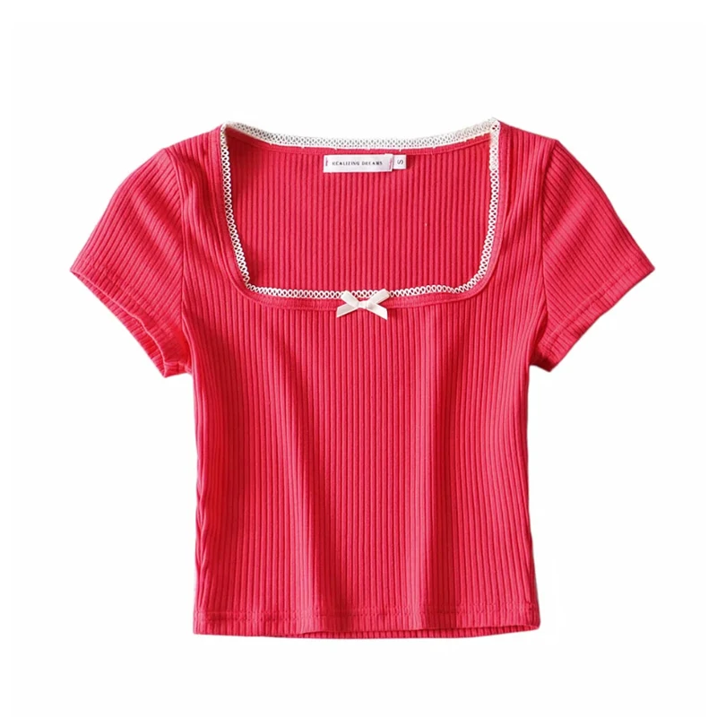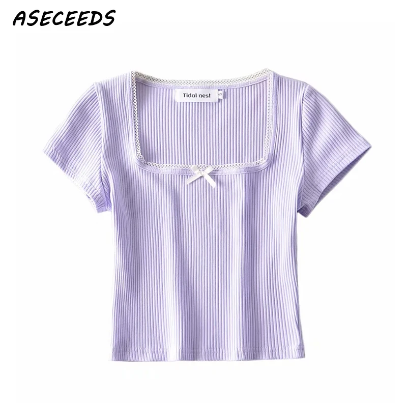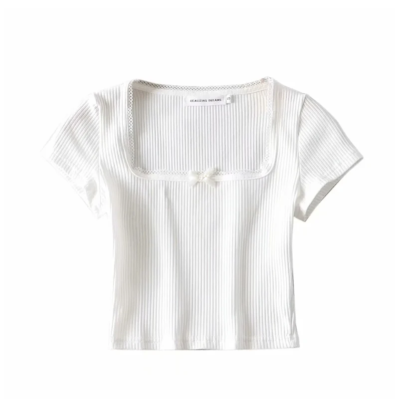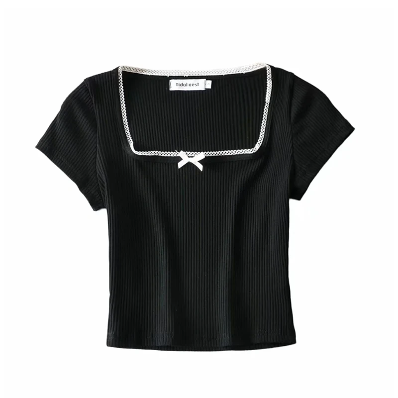 Весна 2018 корейский Винтаж Лето Черный Белый короткий топ Женская трикотажная футболка с коротким рукавом kawaii уличная