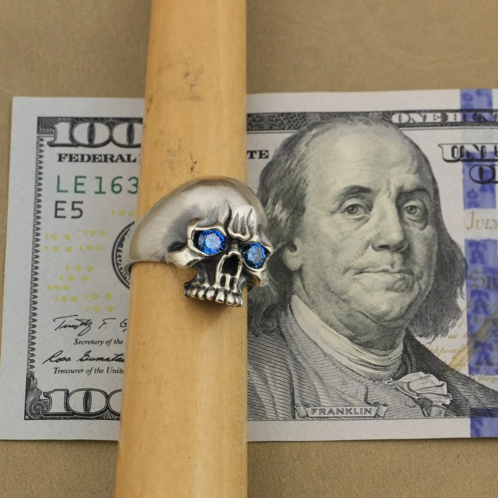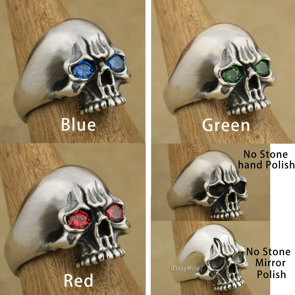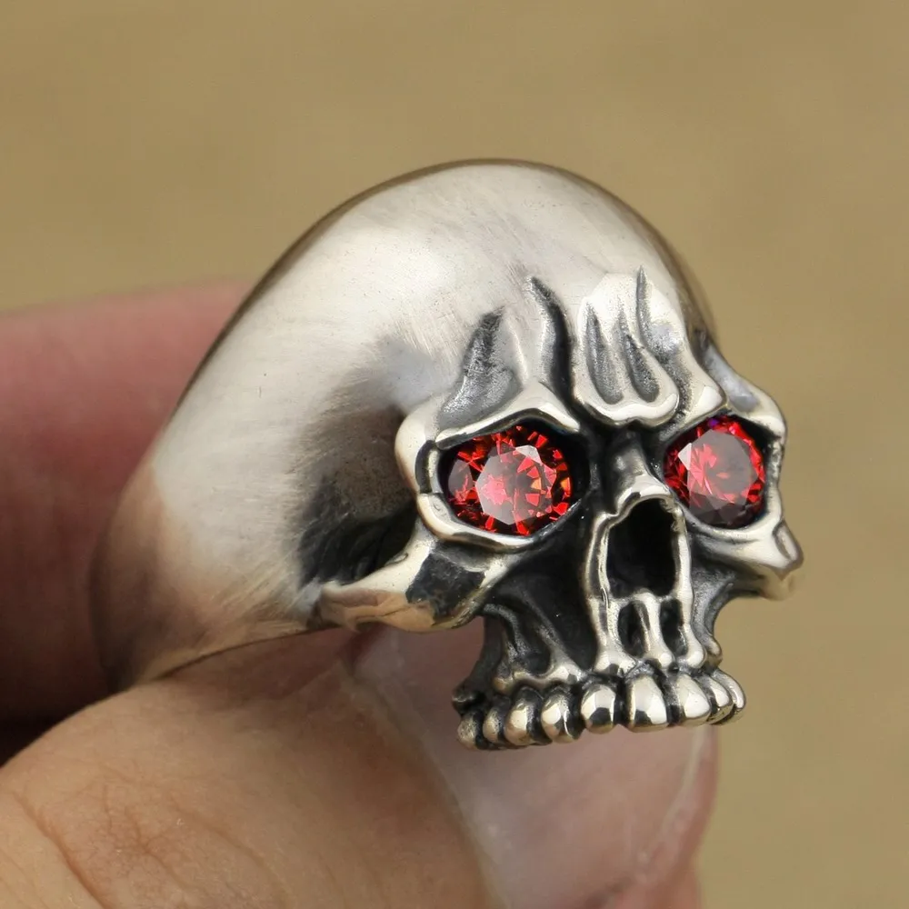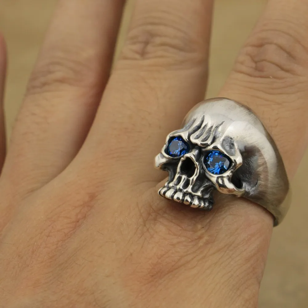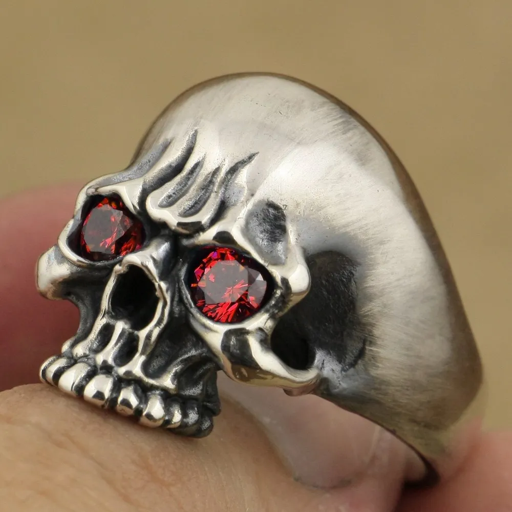 925 пробы Серебряное кольцо с черепом в виде глаз CZ, мужское байкерское кольцо в стиле рок-панк TA6X