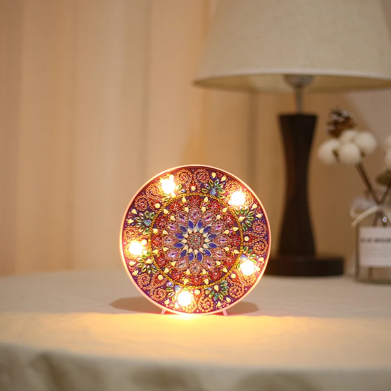 Алмазная живопись Мандала светодиодный ными лампами сделай сам специальная форма полностью сверлильный Кристалл Алмазная картина прикроватная лампа для украшения дома
