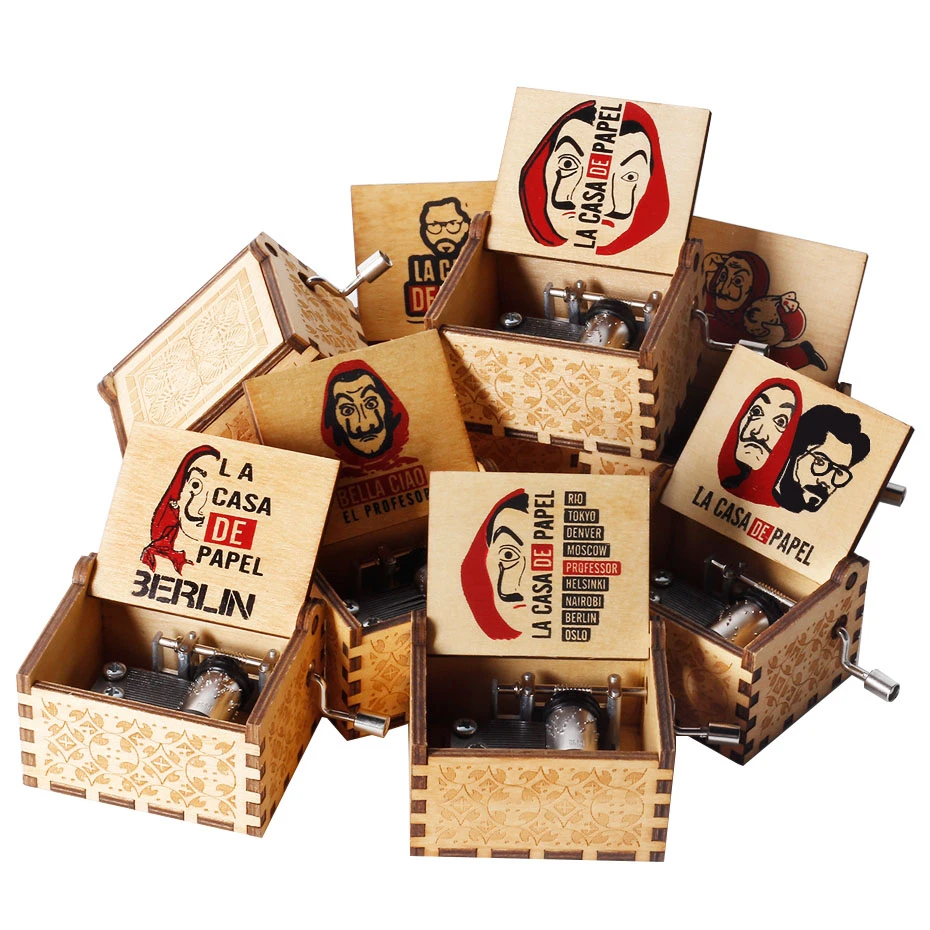 Музыкальная шкатулка Bella Hello LA CASA DE PAPEL, античная деревянная резная коробка с ручным приводом, подарок для мальчика, подарок на день рождения