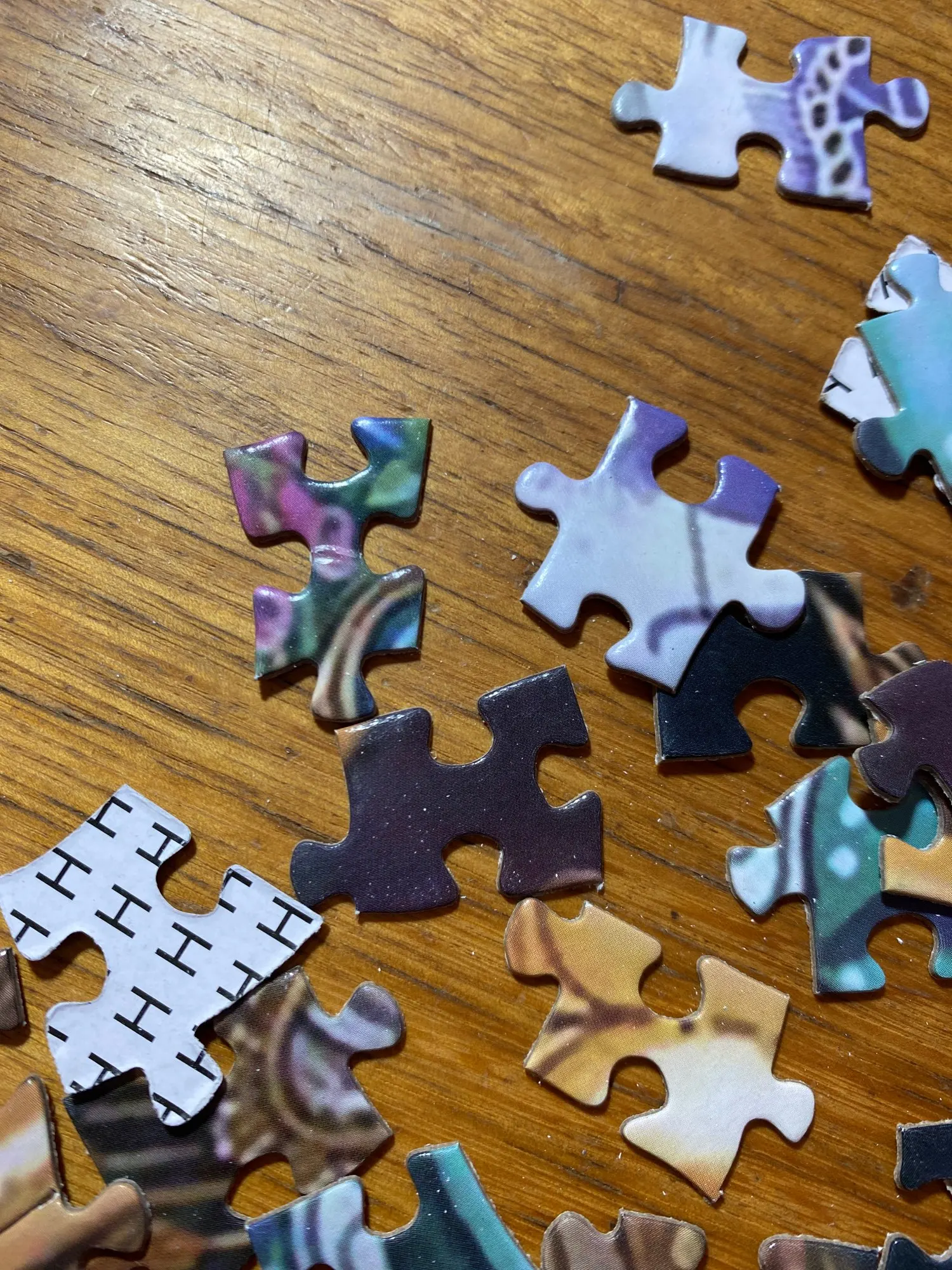 Коробка была сильно повреждена, но кусочки пазлов хорошие, надеюсь. Нужна более прочная упаковка!
