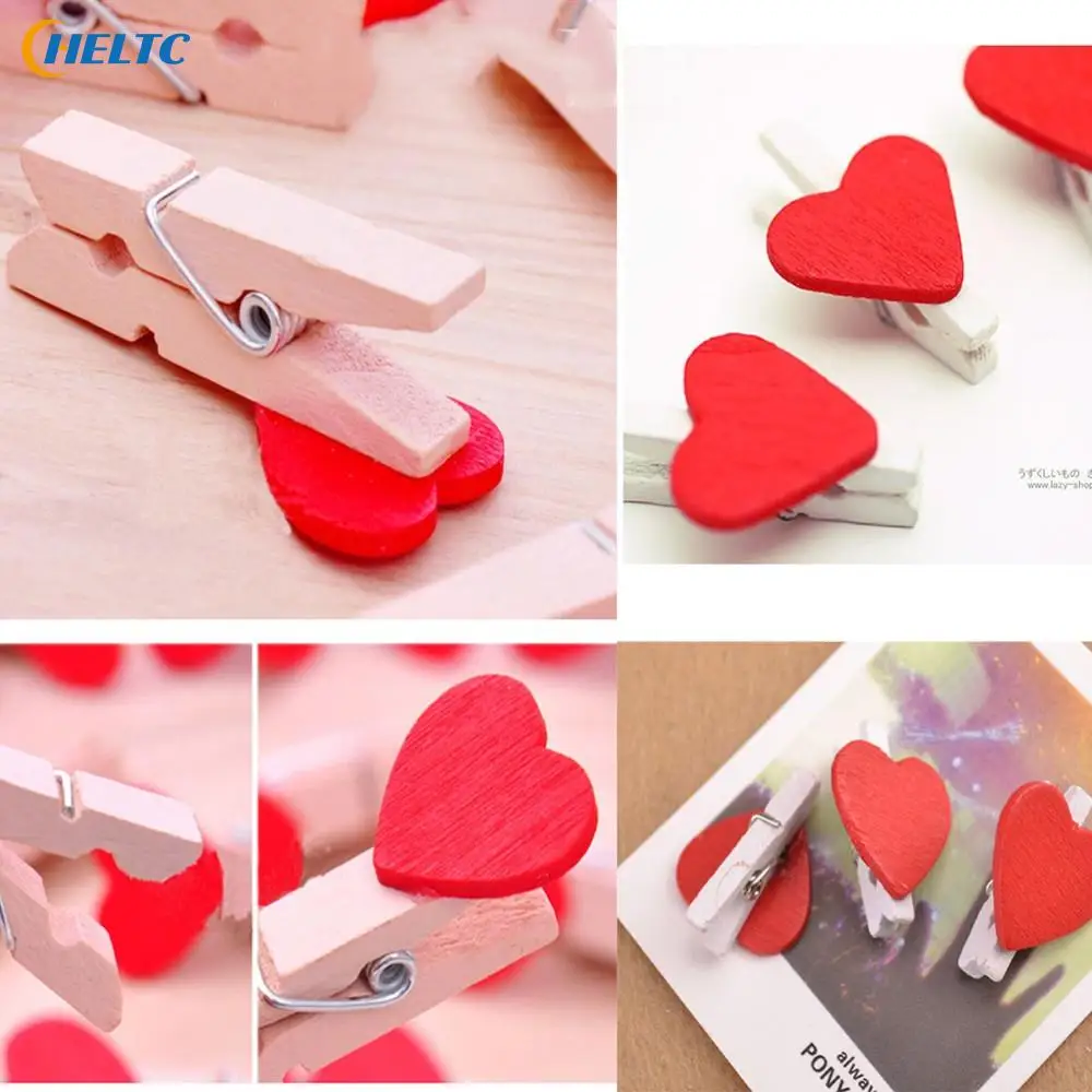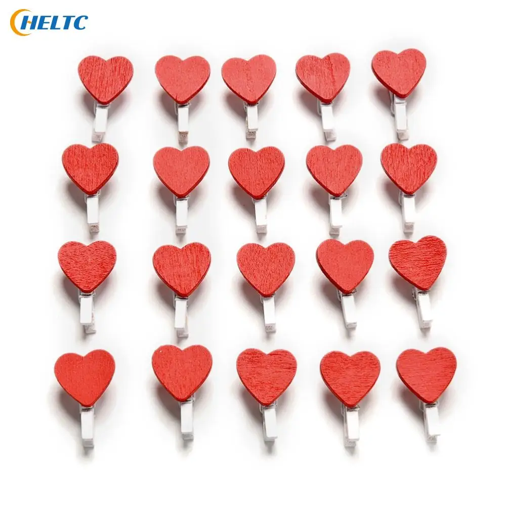 Деревянные бумажные зажимы для фотографий, 20 шт., милые каваи, сердечки, прищепки для фотографий, прищепки, украшения для дома, свадьбы