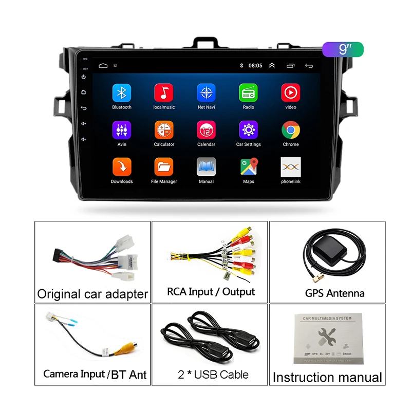 Автомобильный мультимедийный плеер, с 9 "экраном, на Android 9,1, для Toyota Corolla E140150, 2008, 2009, 2010, 2011, 2012, 2013, автомобильная стерео система с GPS-навигацией