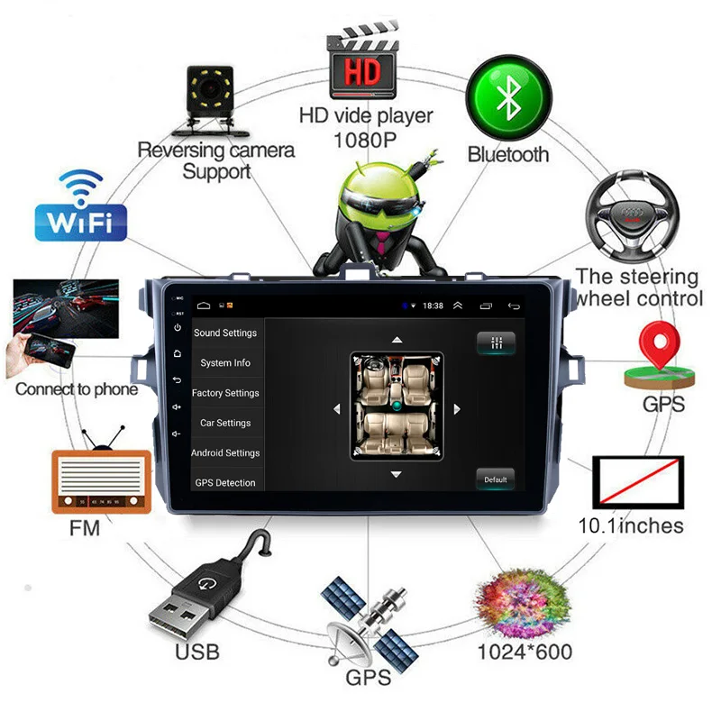 Конфигурация системы· Процессор: AutoChips AC8227L APSoc, четырехъядерный ARM Cortex-A7, до 1,3 ГГц· ОЗУ: 1 ГБ/2 ГБ· ПЗУ: 16 Гб/32 ГБ· Операционная система: Android 9,1Аппаратная конфигурация· Экран: 9 дюймов· Спецификация дисплея: HD· Разрешение дисплея: 1024*600· Сенсорный экран: емкостный сенсорный экран· USB: Поддержка 2 USB, максимальная емкость 32 Гб· TF-карта: не поддерживает· Усилитель IC: TDA7388 Высокоточный автомобильный усилитель, 4*45 Вт· Микрофон: Высокочувствительный, с низким уровнем шума, четкий телефонный звонок
