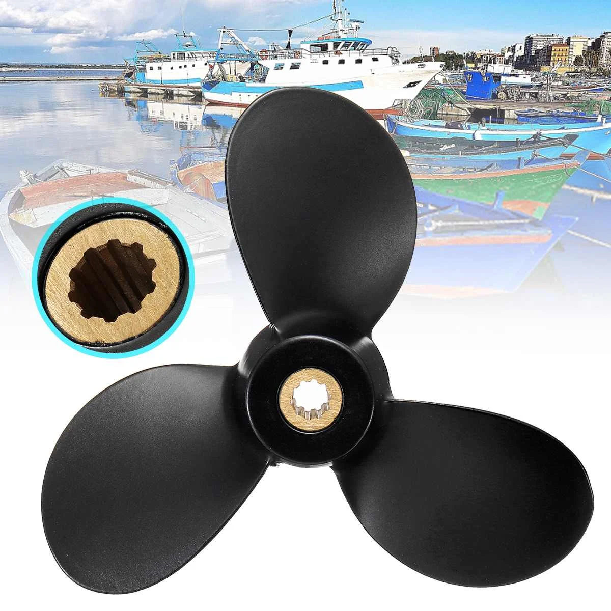 [Характеристики]Материал: алюминиевый сплавЦвет: черныйШаг: 6 дюймовВращение: RКоличество лезвий: 3Количество шлицевых зубцов: 10Диаметр: прибл. 7 1/2 ”(191 мм)