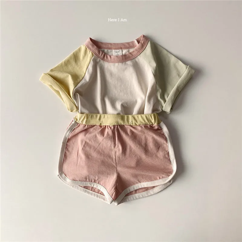 Летний костюм для мальчиков и девочек, корейский стиль, милые цветные шорты, спортивный костюм для детского сада