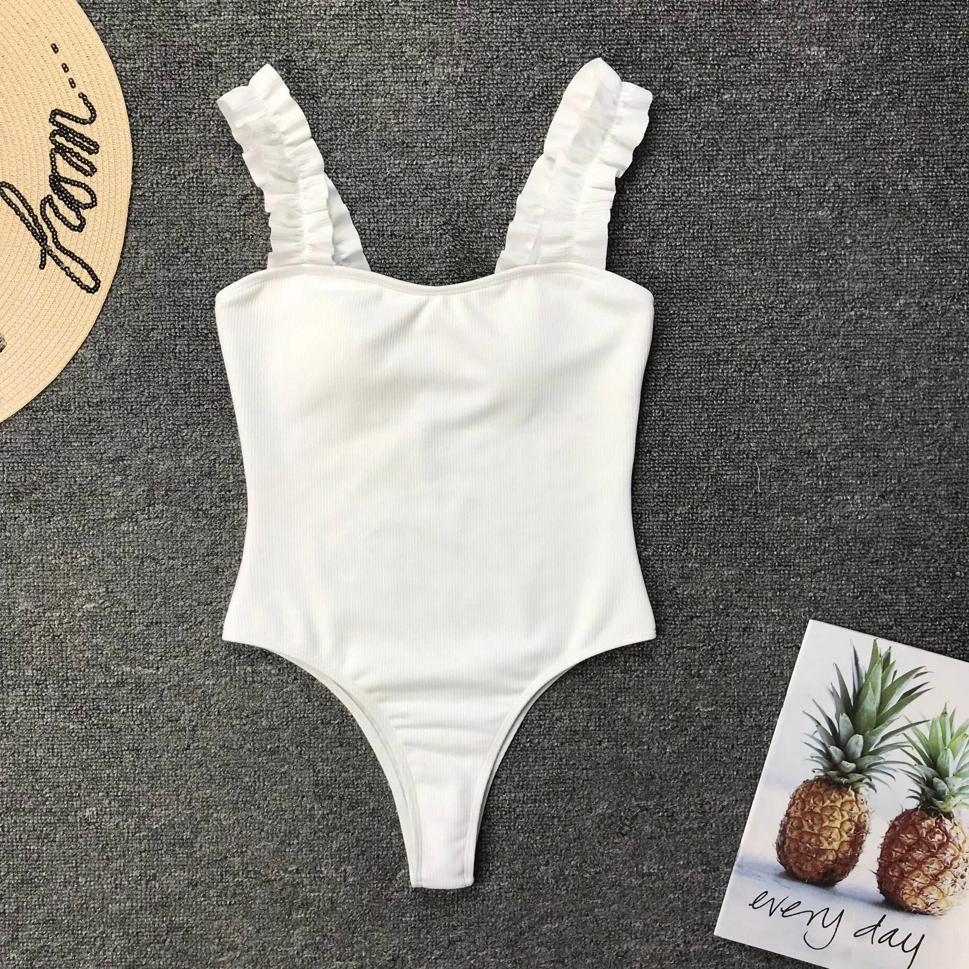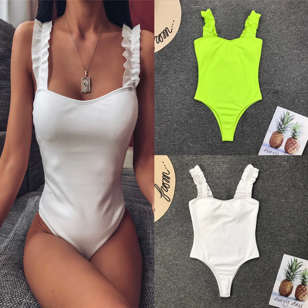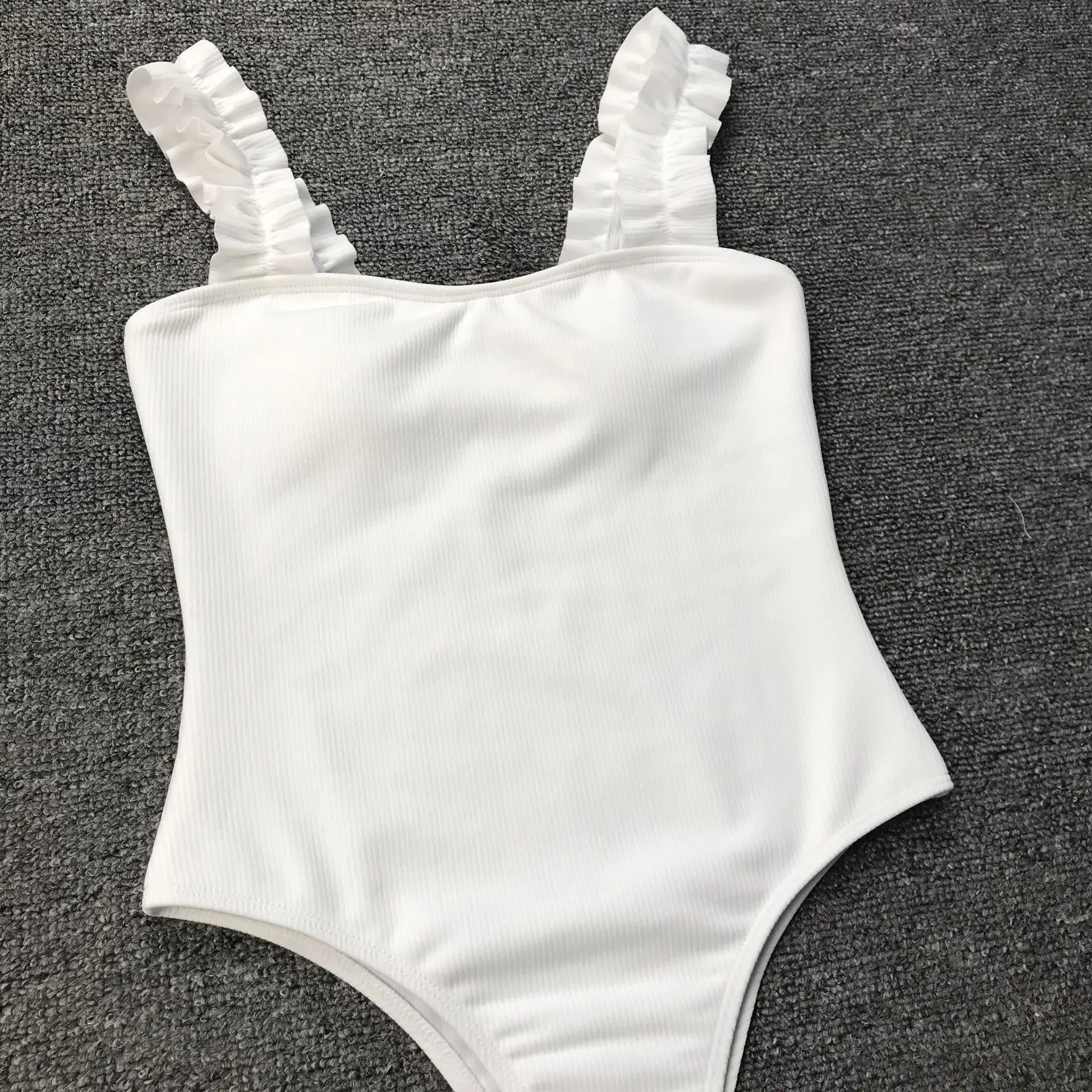 Белый черный красный неоновый желтый слитный купальник с оборками н...
