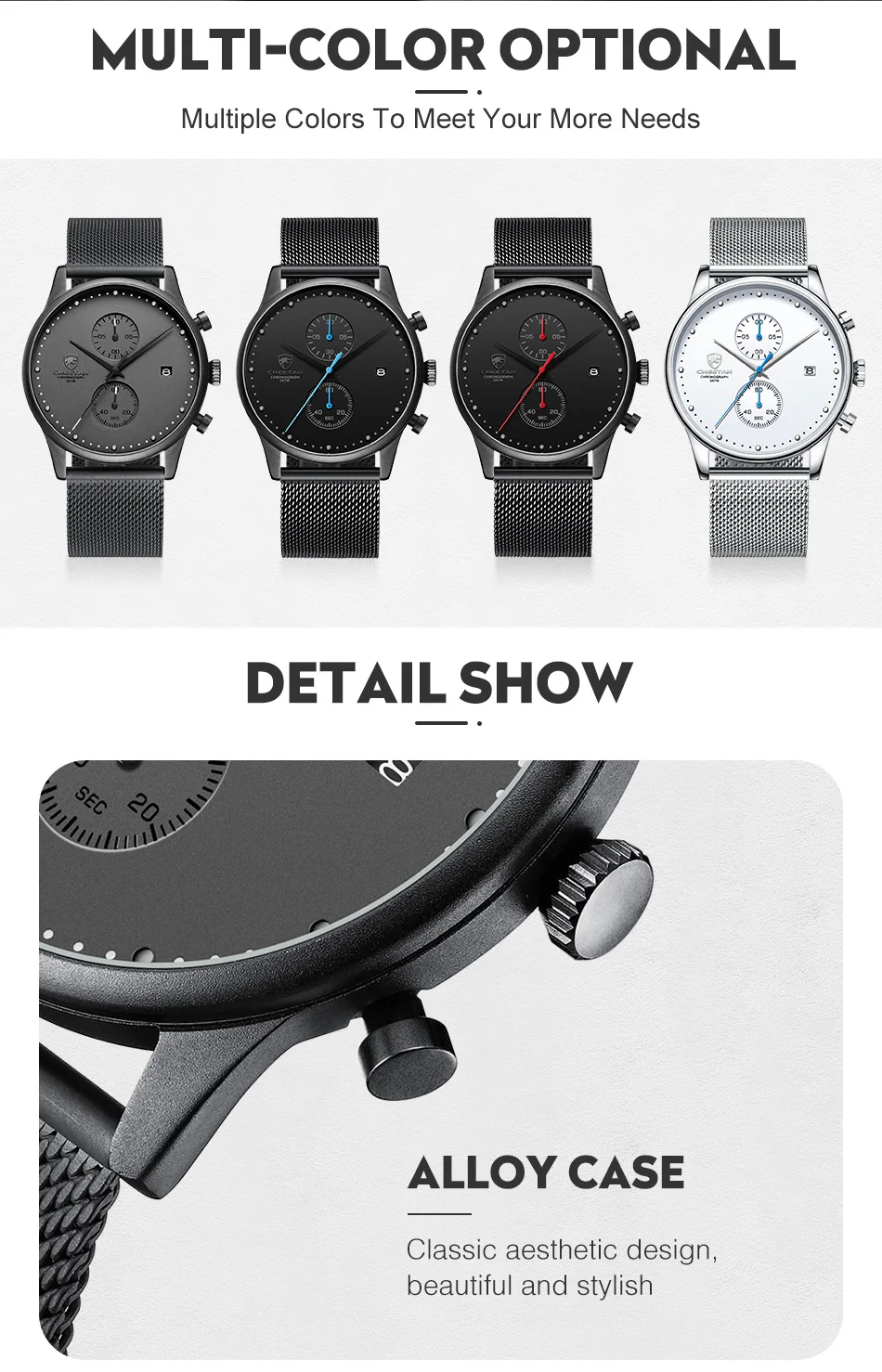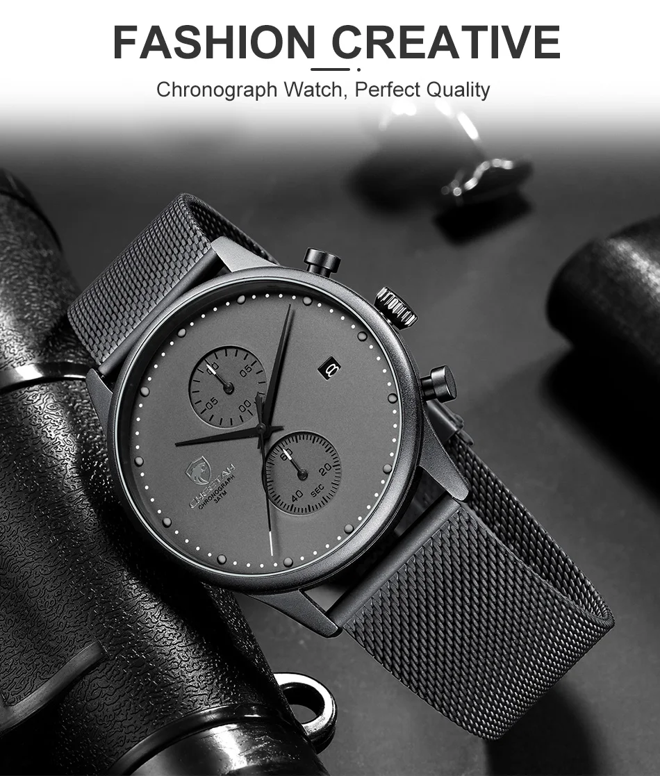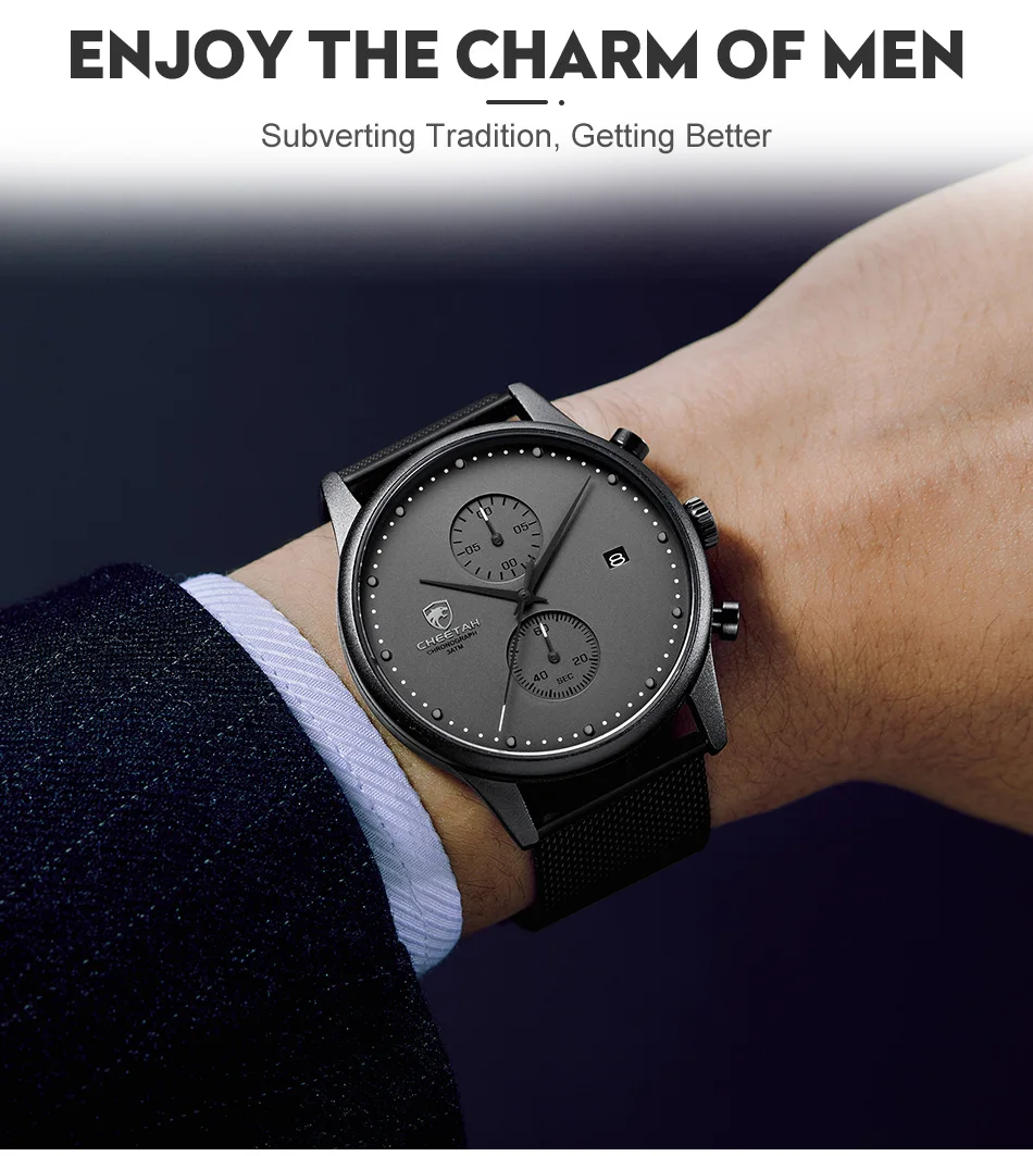 Часы мужские кварцевые, водонепроницаемые, из нержавеющей стали, с хронографом