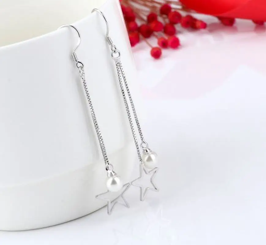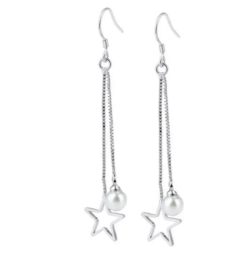 S925 серебряные ювелирные изделия, женские серьги, милые модные длинные серьги со звездами, серьги для девочек, простые металлические серьги с золотой звездой, ювелирные изделия