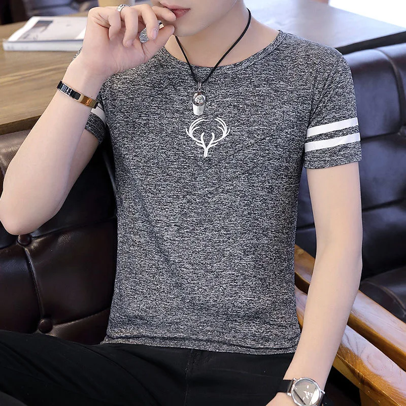 Мужская облегающая футболка с круглым вырезом, с коротким рукавом