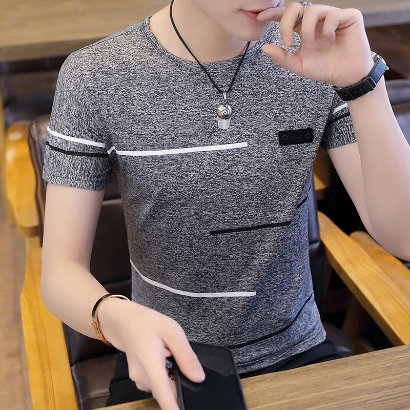 Футболка мужская стрейчевая, Повседневная Базовая тенниска с коротк...