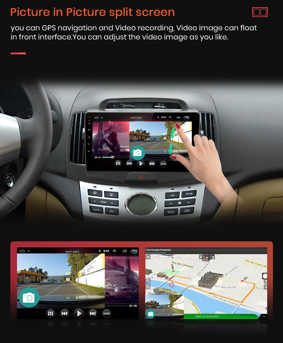 screen display9 inch 2.5D screen, 1024*600 resolution