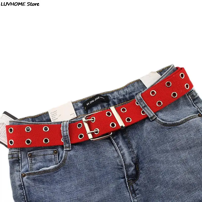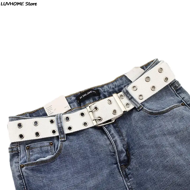 Новый дизайн Харадзюку широкий холст паутина двойной втулки отверстие Пряжка ремень женский мужской пояс ремни для женщин мужчин джинсы