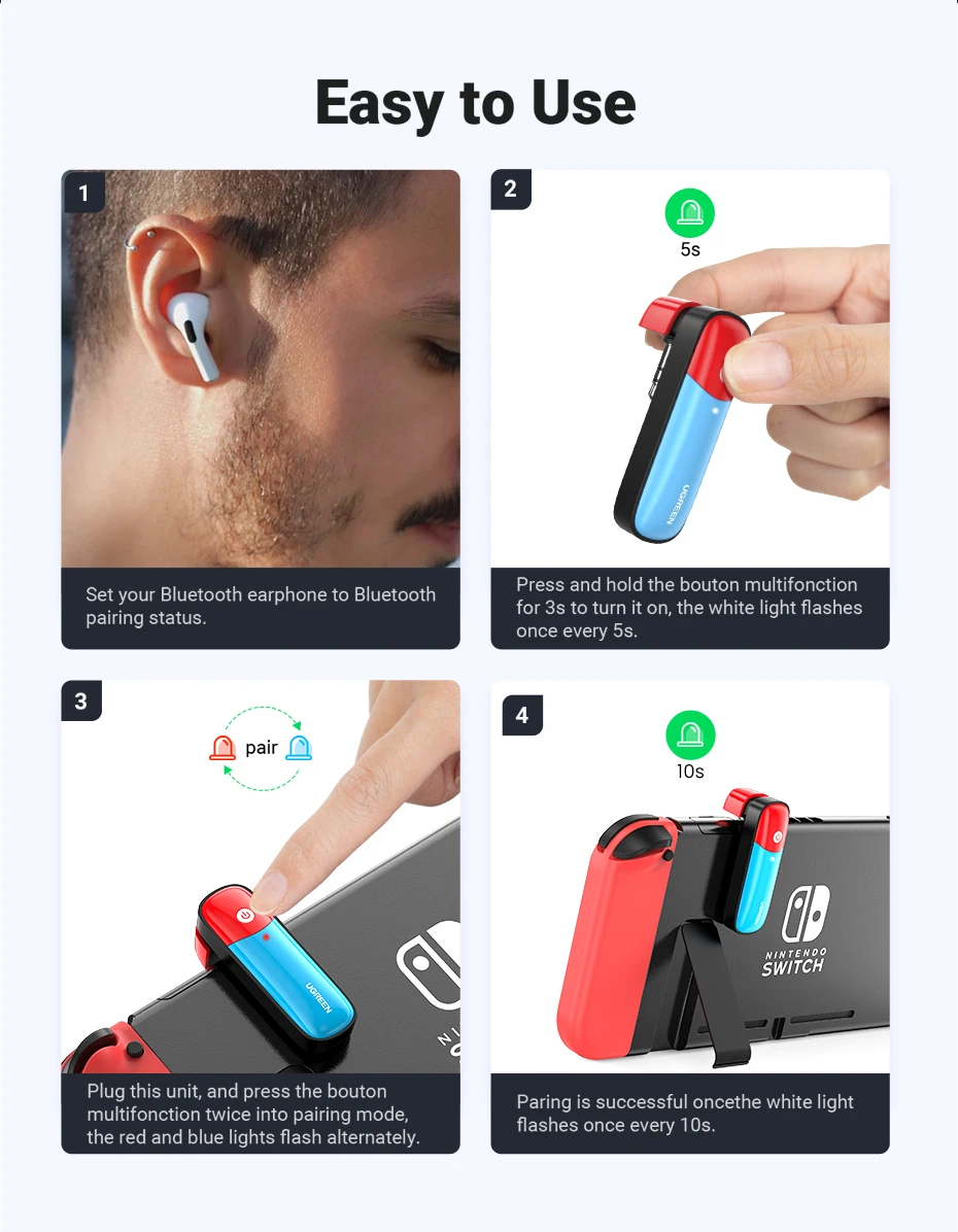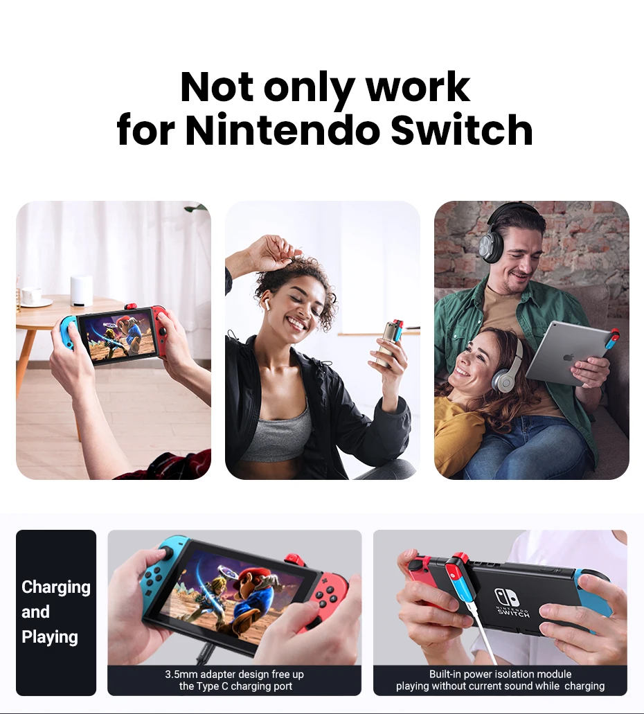Это очень полезно с nintendo switch. Хорошо работает и хороший дизайн. Но звук немного тусклый при использовании bluetooth