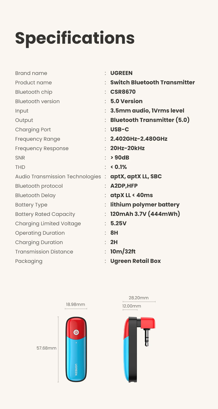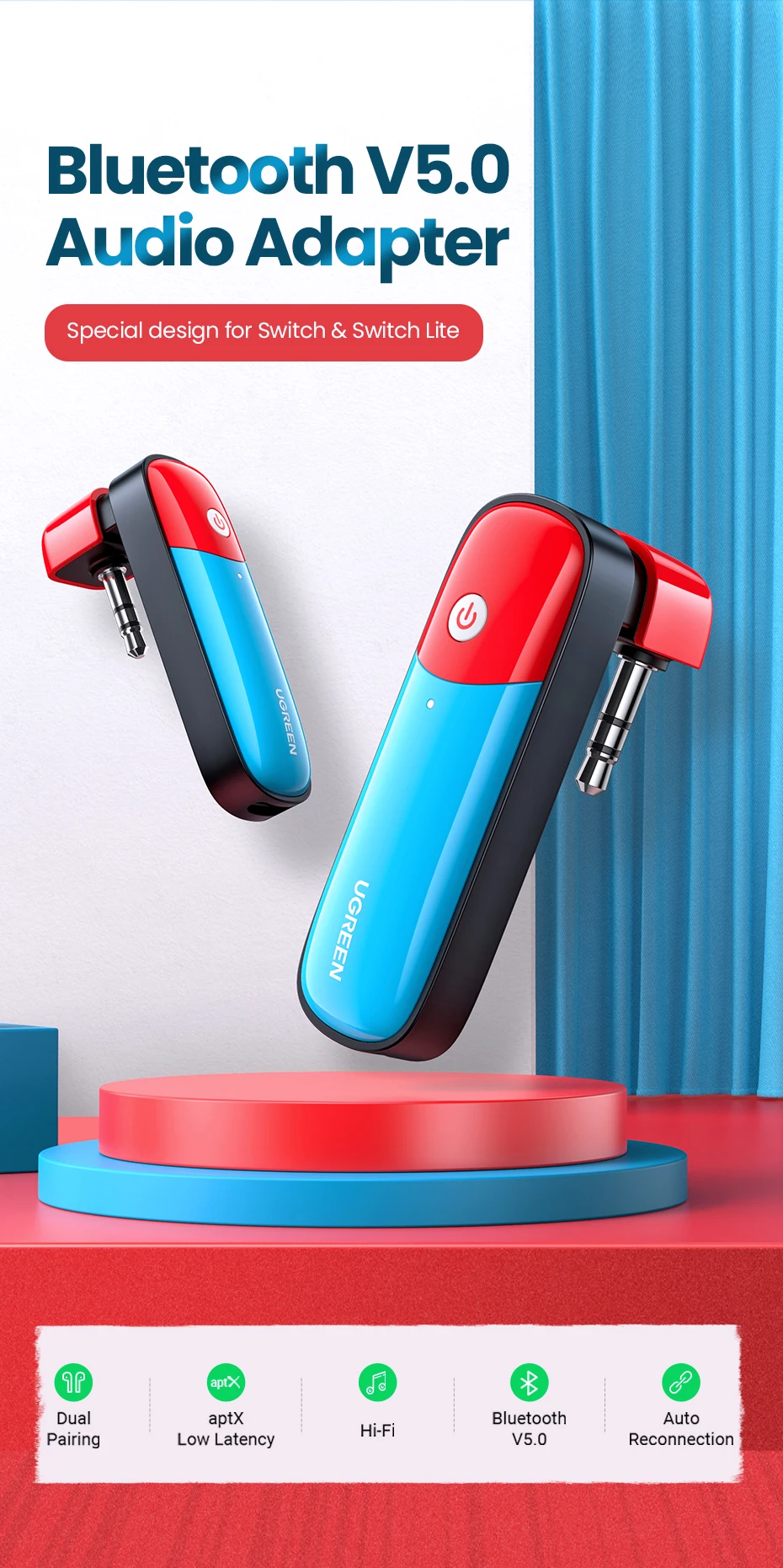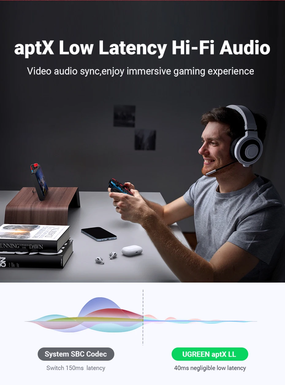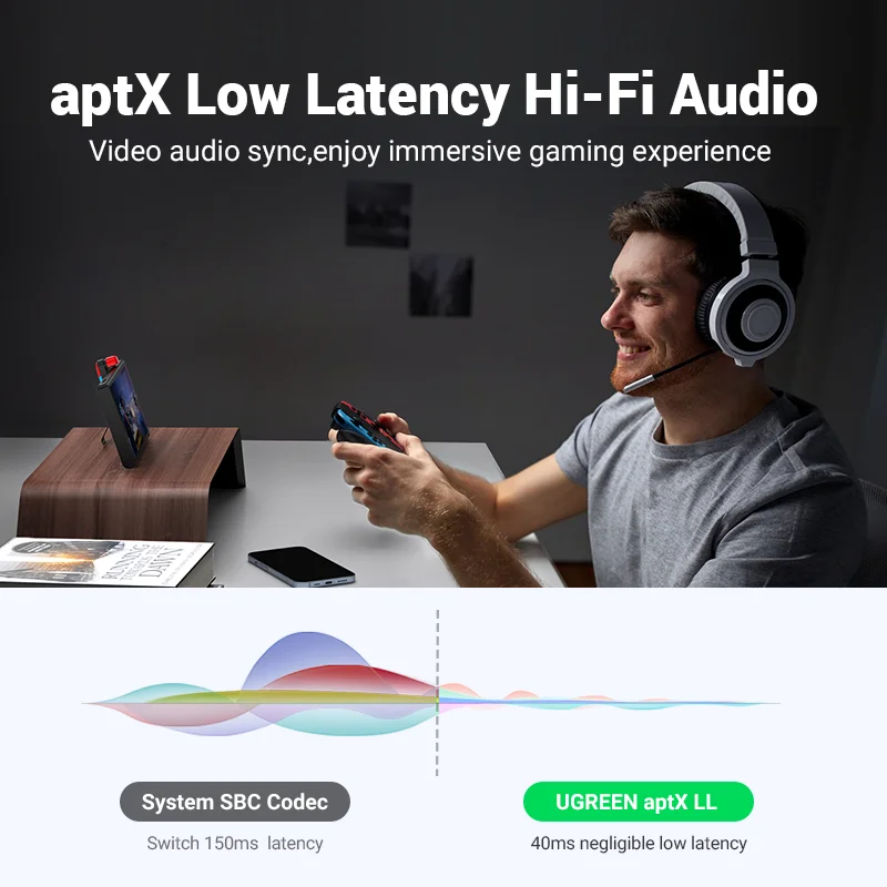 Bluetooth 5,0 передатчик UGREEN, 3,5 мм, дизайн аудио-адаптера для беспроводного передатчика Nintendo Switch APTX LL