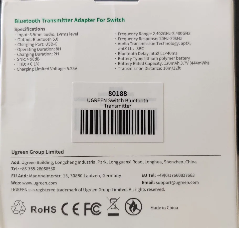 UGREEN качество бренда. Bluetooth идеально совместим и работает. Настоятельно рекомендуется