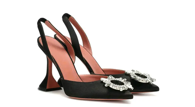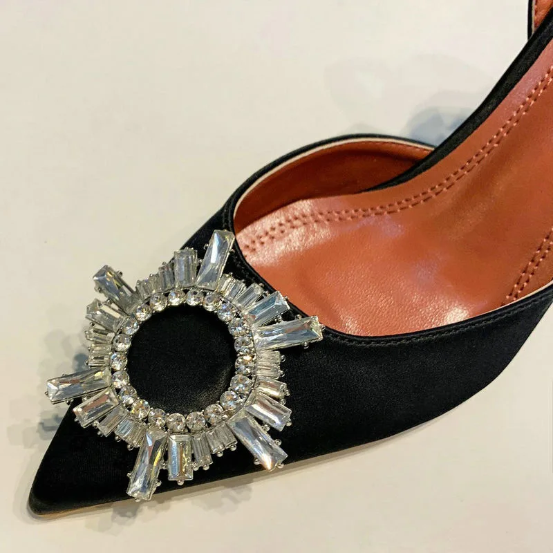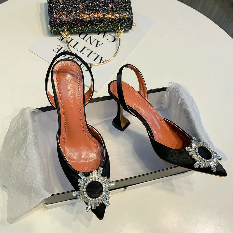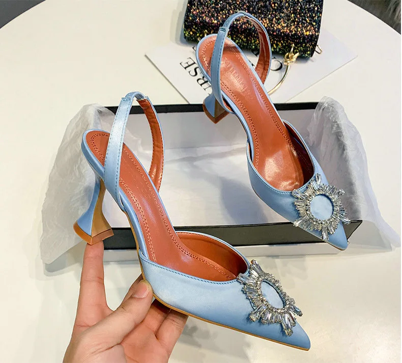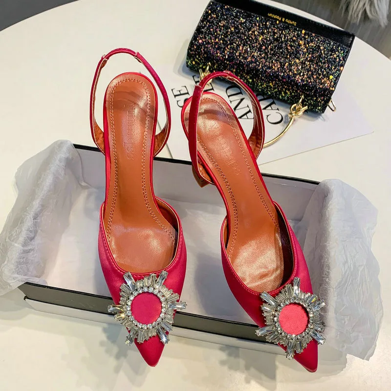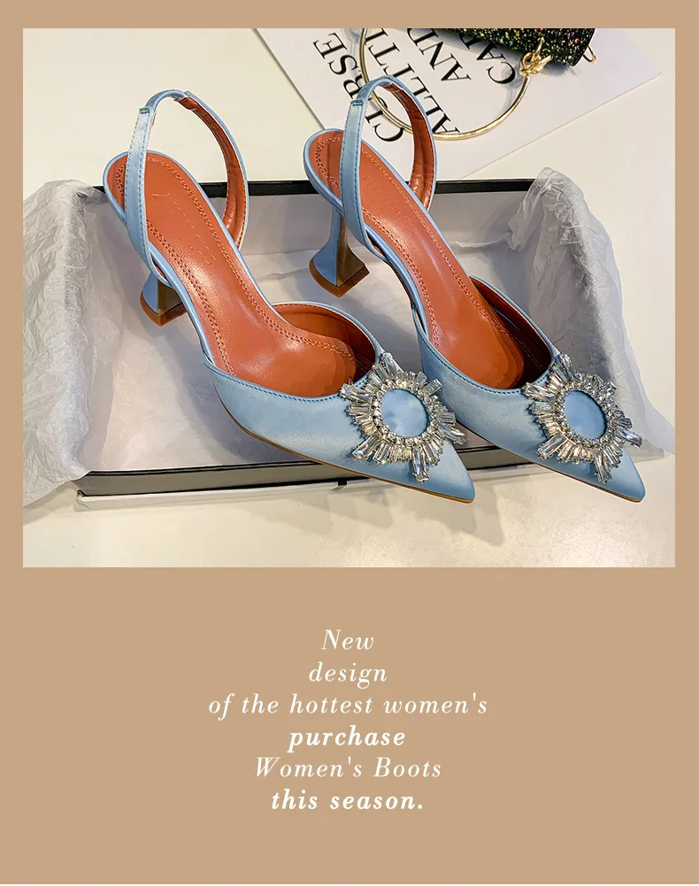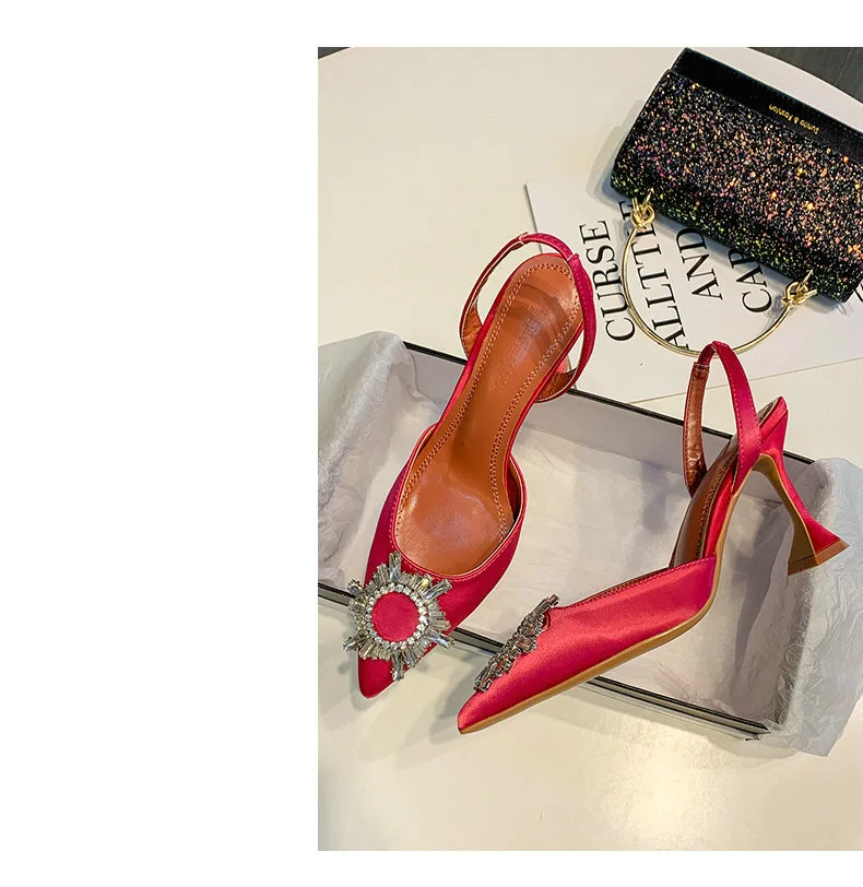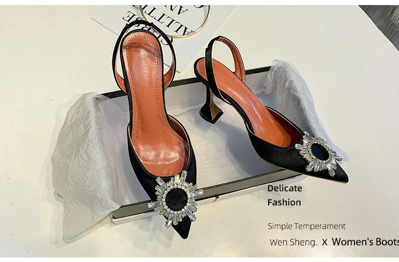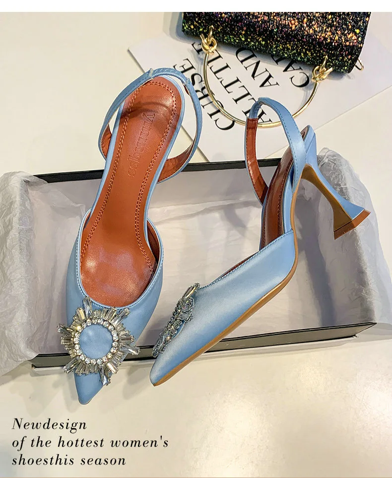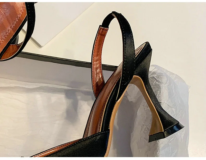 Новинка 2022, сатиновые сандалии разы с пряжкой от солнца на высоком каблуке, однотонные женские сандалии с острым носком, женская обувь