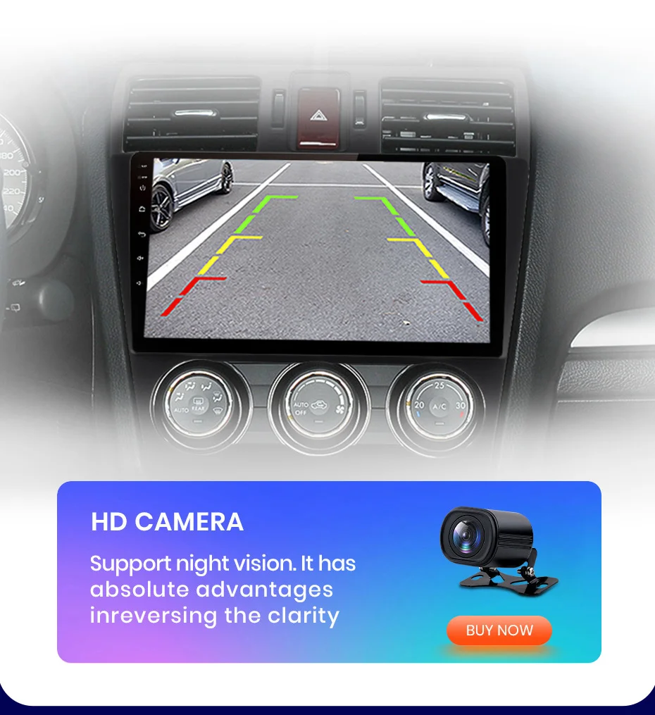 Когда автомобиль переключается на обратную передачу, экран автоматически переключается на задний вид с помощью парковочных линий, помогает вам изменить или припарковать автомобиль.(Задняя камера на изображении ниже является необязательной, и она лучше, чем обычная.)