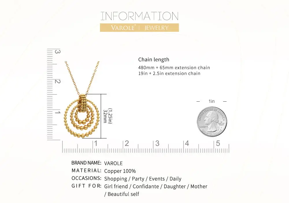 Ожерелье VAROLE с подвеской для женщин, цепочка из нержавеющей стал...