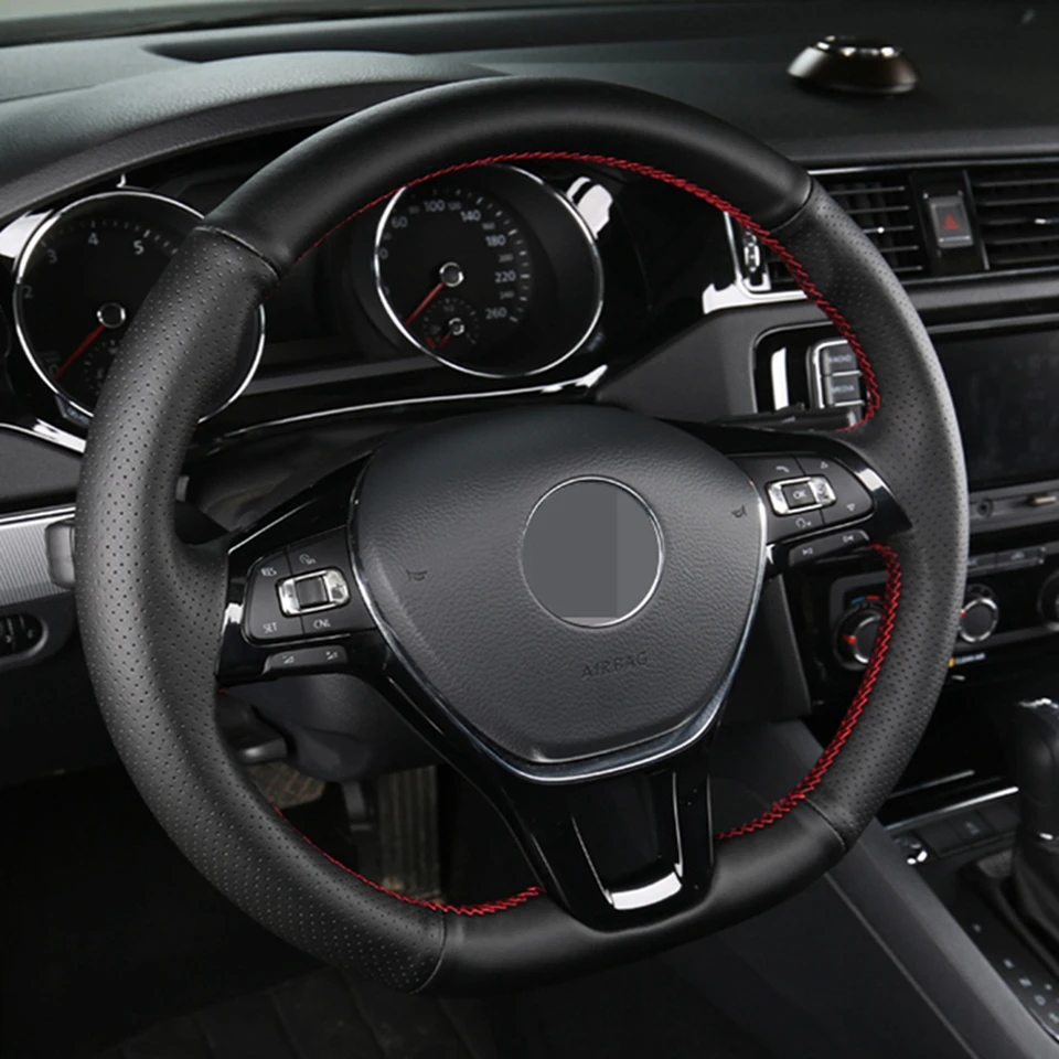 Черные чехлы на руль из искусственной кожи для Volkswagen VW Golf 7 Mk7 New Polo Passat B8 Tiguan Sharan Jetta