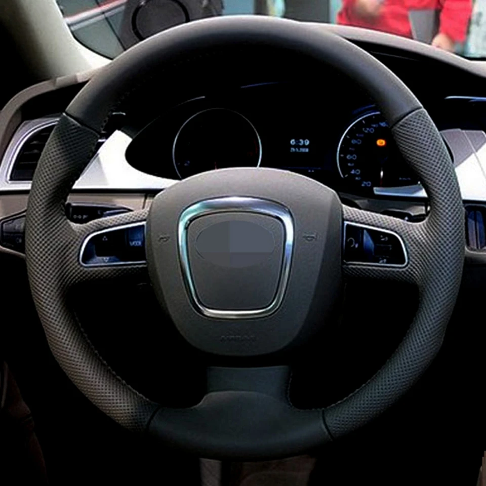 Черный чехол рулевого колеса автомобиля искусственная кожа для Audi A3 (8P) 2008-2013 A4 (B8) 2008-2010 A5 2008-2010 A6 (C6) 2007-2011