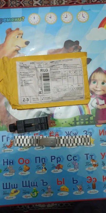 Доставка за 16 дней до Краснодарского края. Выглядит здорово, защёлка на браслете щёлкает без нареканий. Из несущественных минусов - неплотный покрас на звеньях в тех местах, которые при надевании часов всё равно не видны ни под каким углом. И "лишние" звенья нужно отделять строго по направлению стрелки с обратной стороны браслета, иначе есть неприятный шанс того, что стержень застрянет между ними и его нельзя будет извлечь, не погнув.